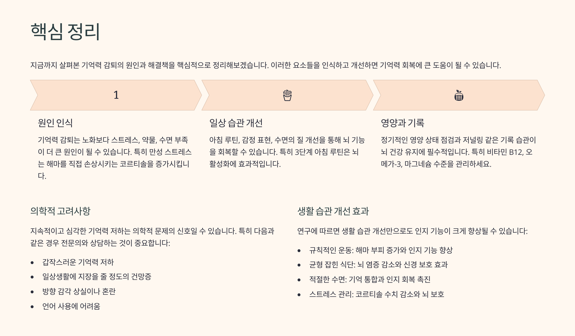 • 1. 기억력 감퇴는 노화보다 스트레스·약물·수면이 더 큰 원인