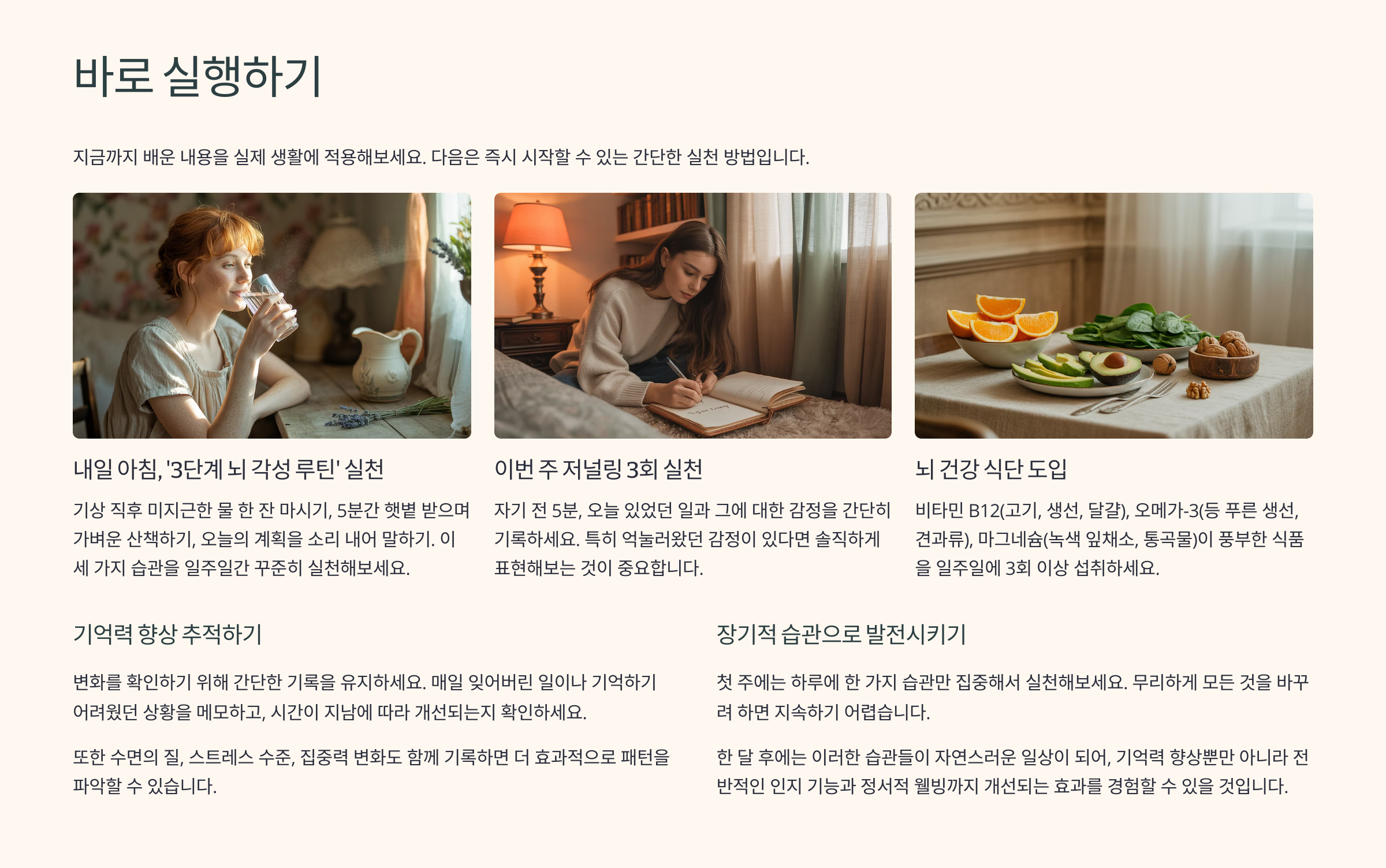 • 2. 아침 루틴, 감정 표현, 수면 개선으로 뇌 기능 회복 가능