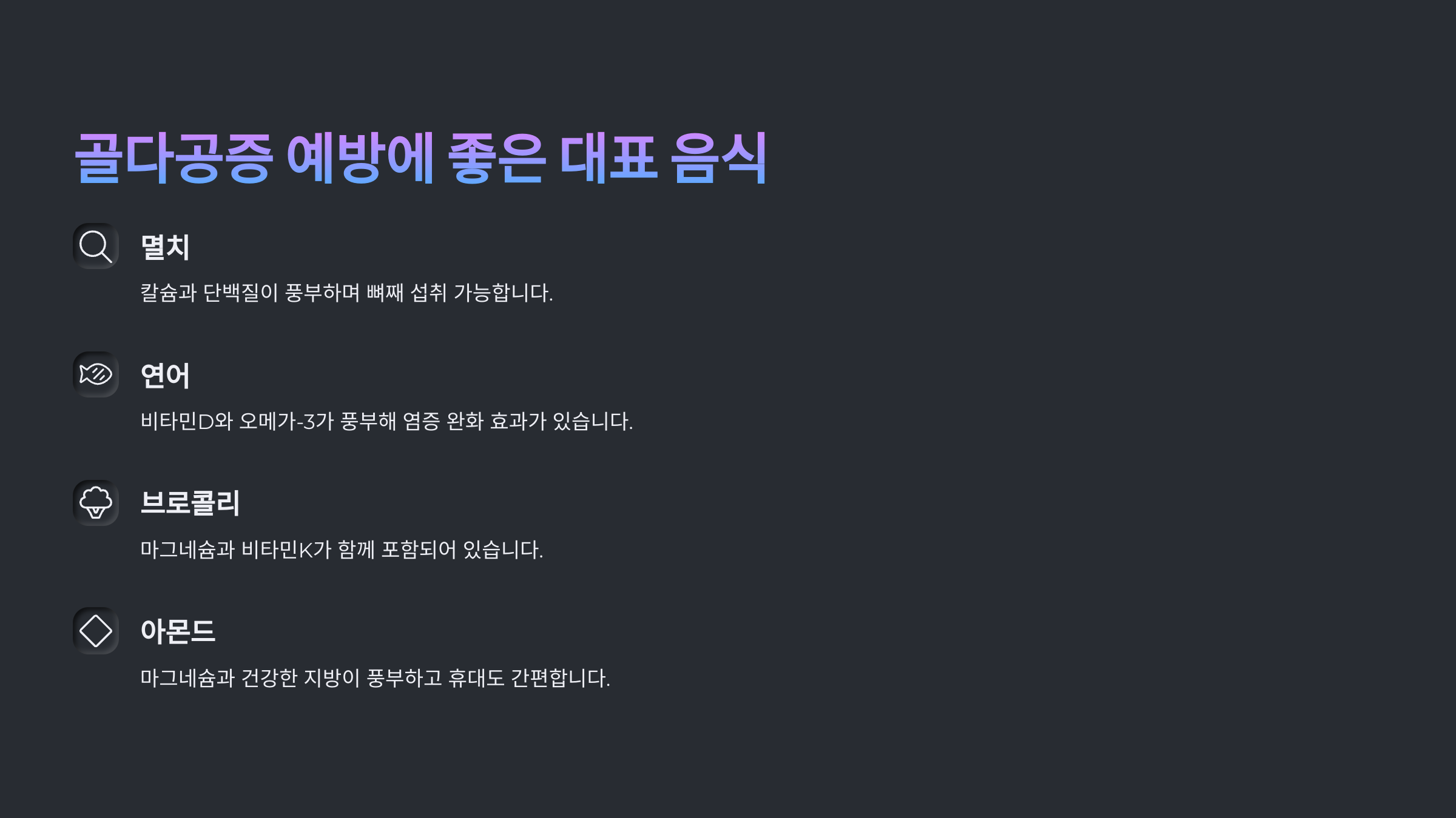 | 골다공증에 좋은 음식 – 뼈 건강에 이로운 식품 정보 중심 (1) | 2025.06.10 |