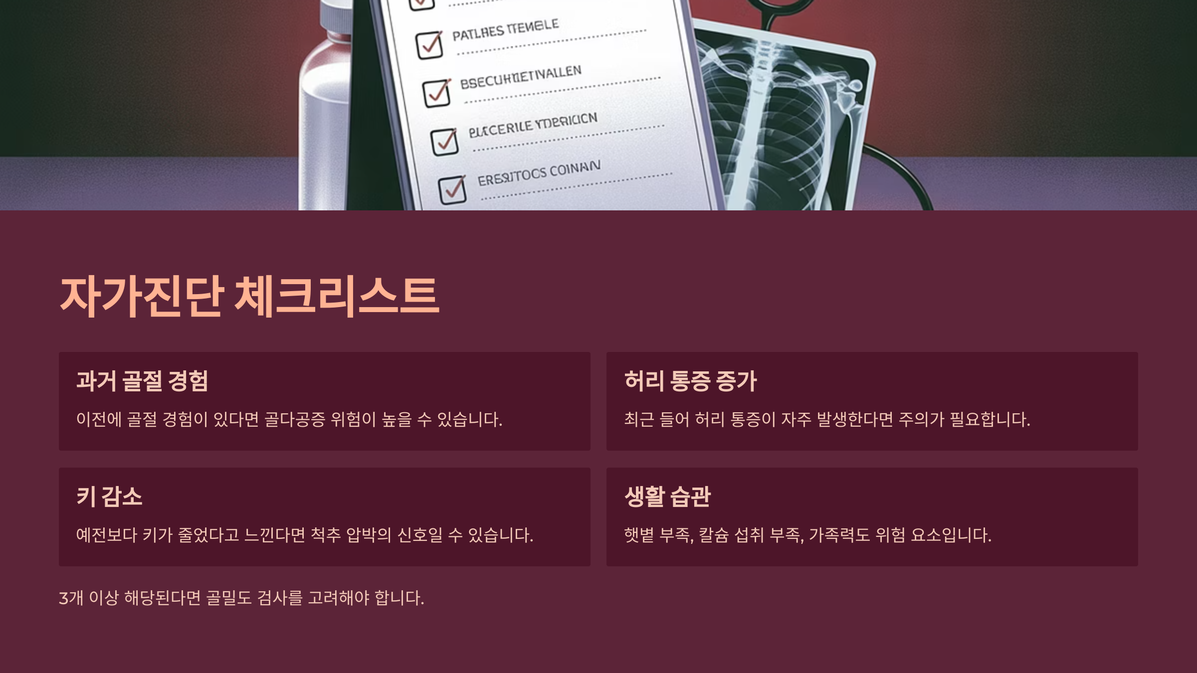3개 이상 해당된다면 골밀도 검사를 고려해야 합니다.