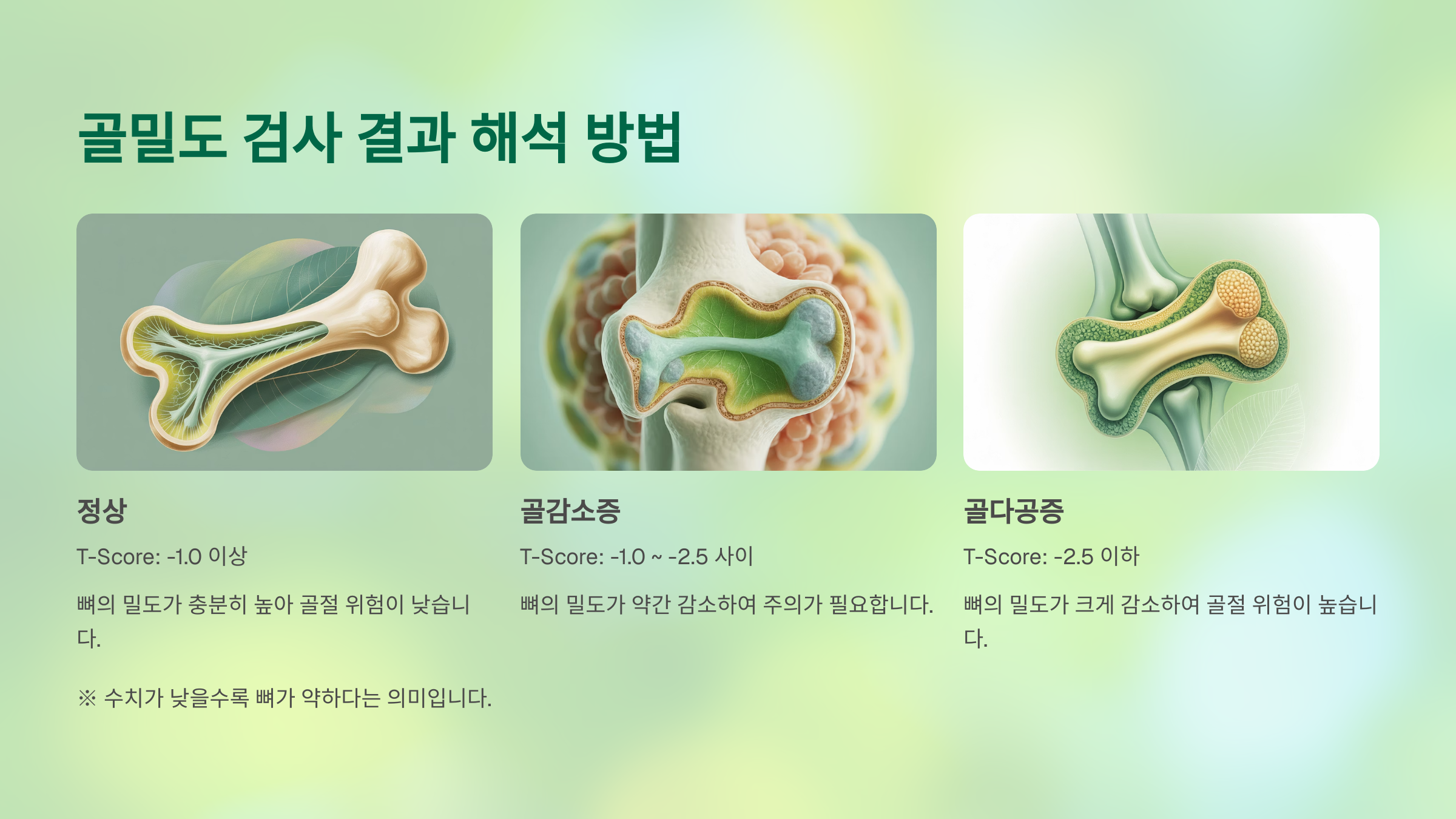 - 결과에 따라 칼슘, 비타민D 섭취와 운동 습관 조정