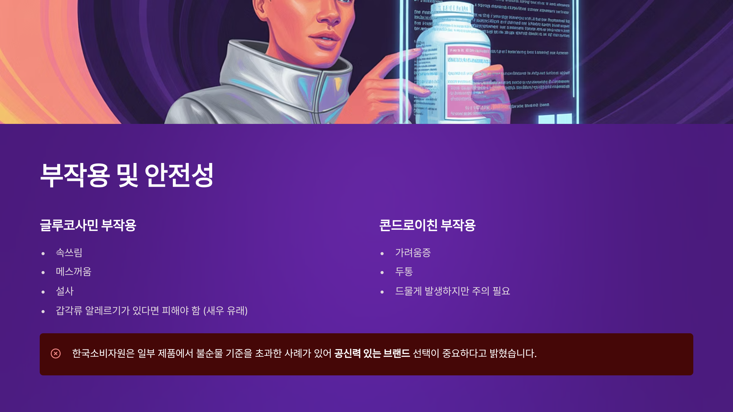 만약 갑각류 알레르기가 있다면, 글루코사민(새우 유래)은 피해야 합니다.