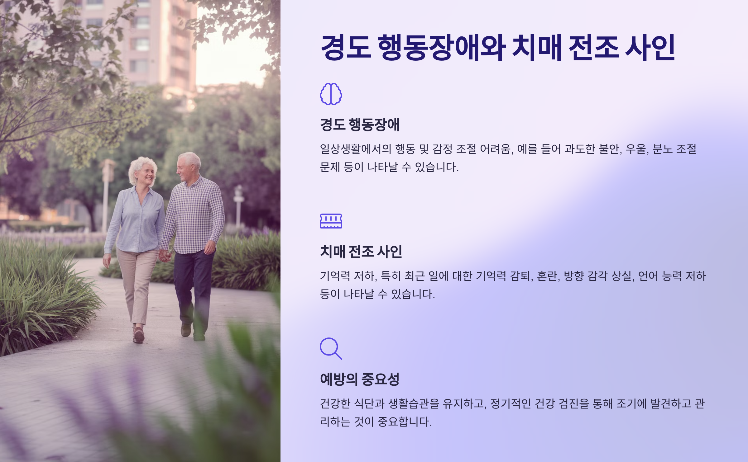 경도 행동장애는 일상생활에서의 행동이나 감정 조절에 어려움을 겪는 상태를 말합니다. 이는 뇌의 기능 저하와 밀접한 관련이 있습니다. 포스파티딜세린이 부족하면 이러한 증상이 더욱 두드러질 수 있습니다. 예를 들어, 평소에 사소한 일에도 쉽게 화를 내거나 우울해지는 경우가 있을 수 있습니다.