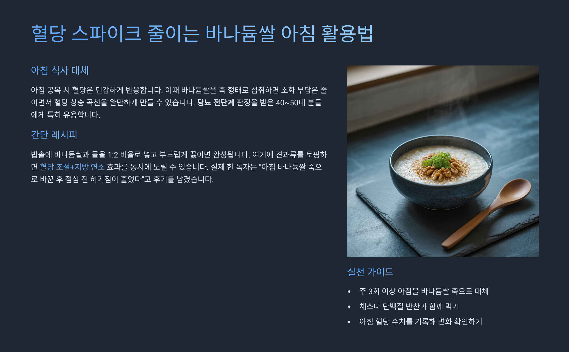 🔥 2. 혈당 스파이크 줄이는 바나듐쌀 아침 활용법