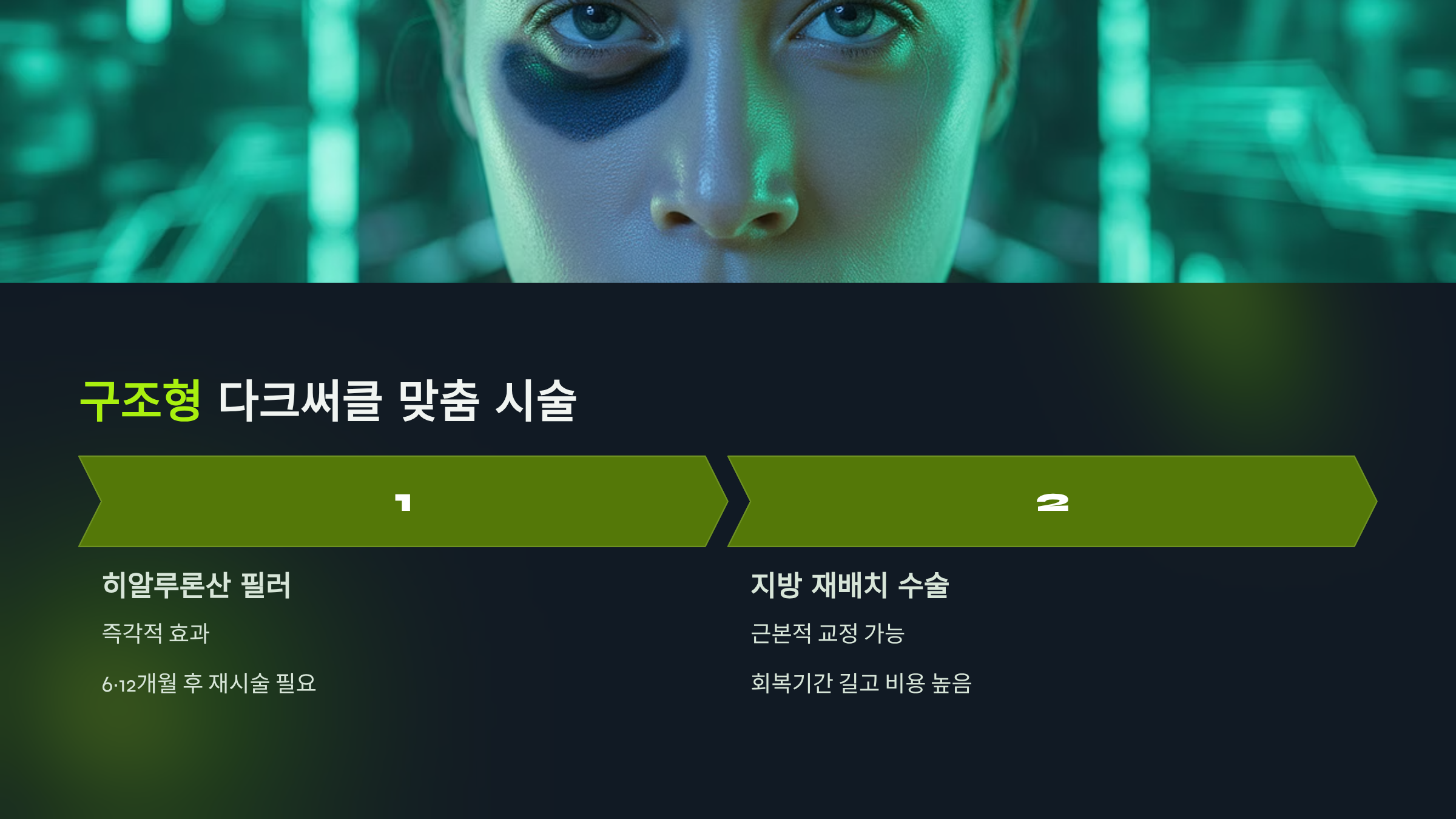 | 구조형 | 필러, 지방 재배치 수술 | 즉각적 개선, 장기 효과 가능 | 비용 부담, 회복 기간 필요 |