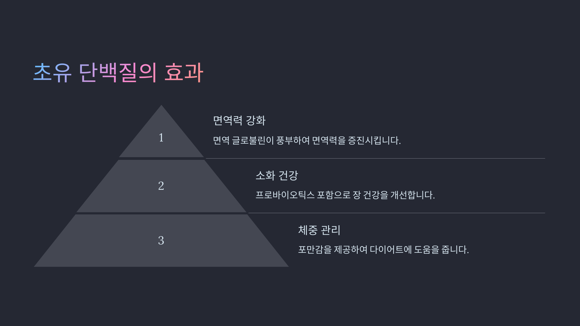 초유 단백질은 포만감을 주어 체중 관리에 도움을 줄 수 있습니다. 다이어트를 하는 사람들에게 좋은 선택이 될 수 있습니다.