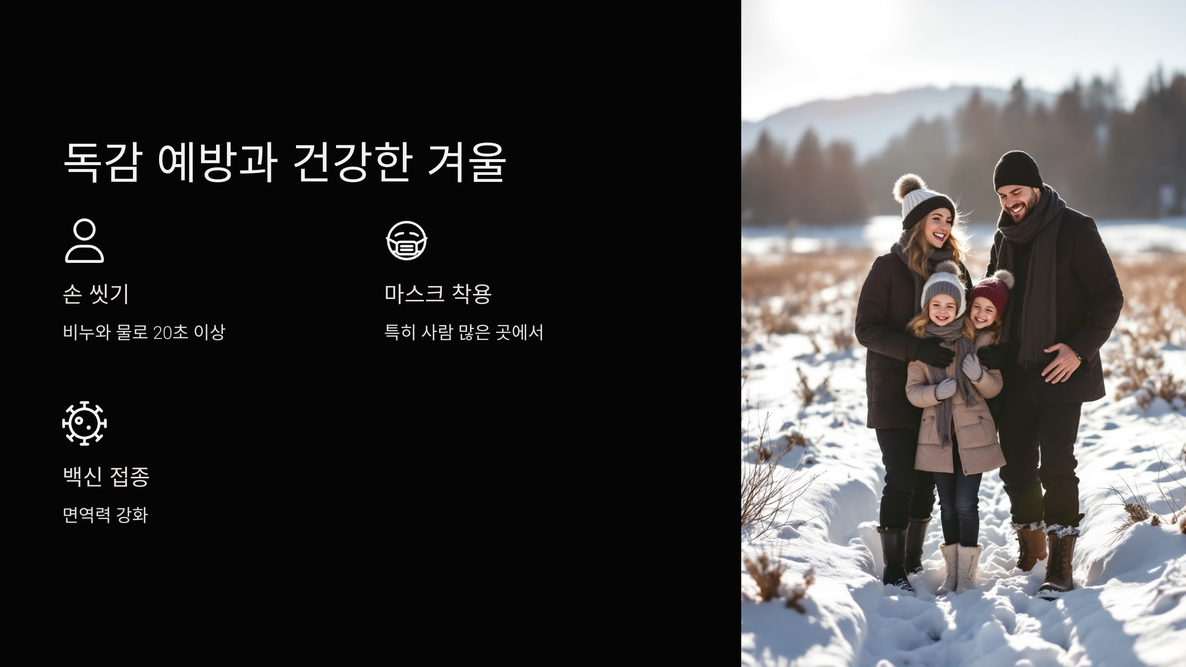 독감은 겨울철에 특히 주의해야 할 질병입니다. 전염 경로를 이해하고, 증상을 조기에 인지하며, 적절한 진단 검사를 통해 건강을 지키는 것이 중요합니다. 예방이 최선의 치료라는 사실을 잊지 말고, 손 씻기와 백신 접종을 통해 독감으로부터 자신과 사랑하는 사람들을 보호해야 합니다. 건강한 겨울을 보내기 위해, 독감에 대한 올바른 지식을 갖추고 실천하는 것이 필요합니다. 독감은 예방할 수 있는 질병입니다. 작은 노력이 큰 변화를 가져올 수 있음을 기억해야 합니다.