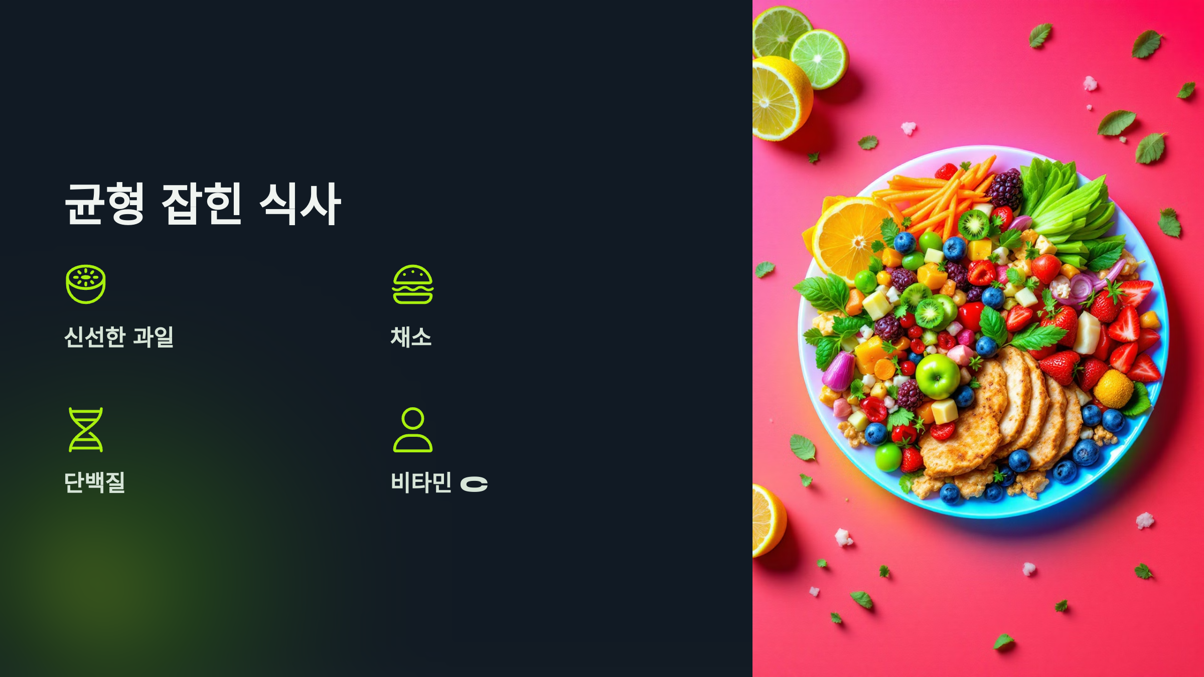 건강한 식사는 면역력을 높이는 데 큰 역할을 합니다. 신선한 과일과 채소, 단백질이 풍부한 음식을 섭취하면 몸이 강해집니다. 특히 비타민 C가 풍부한 음식은 면역력을 높이는 데 도움을 줍니다. 균형 잡힌 식사는 마치 튼튼한 나무를 기르는 것과 같습니다. 뿌리가 깊고 건강한 나무는 어떤 바람에도 흔들리지 않죠. 매일 다양한 색깔의 음식을 접하는 것은 우리의 몸에 필요한 영양소를 공급하는 동시에, 기분까지 좋게 만들어줍니다. 건강한 식사는 단순한 영양 섭취를 넘어, 삶의 질을 높이는 중요한 요소입니다.