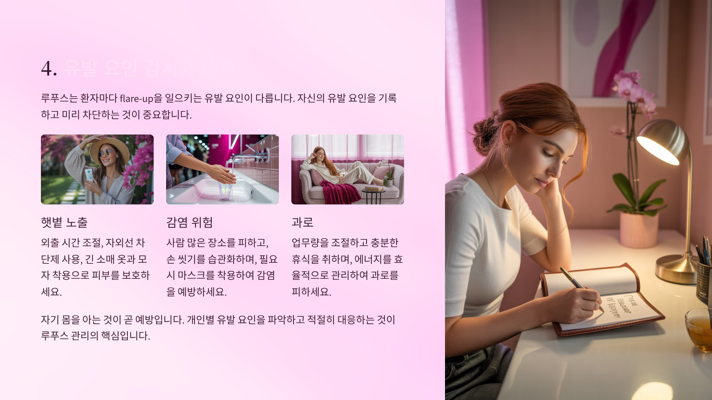 루푸스는 환자마다 flare-up을 일으키는 유발 요인이 다릅니다.