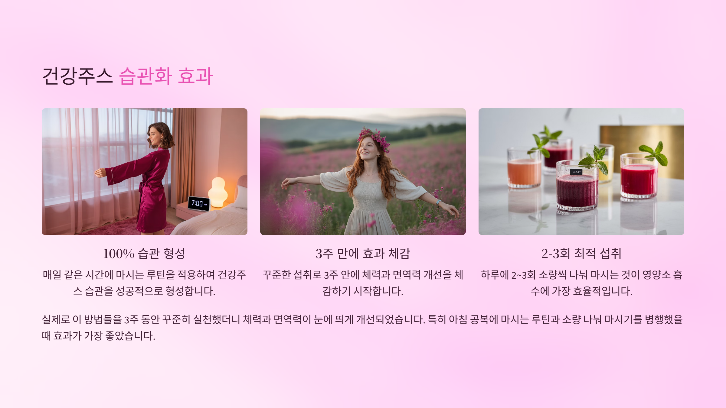 1. 건강주스 루틴화, 정해진 시간과 공복 섭취로 습관화 가능