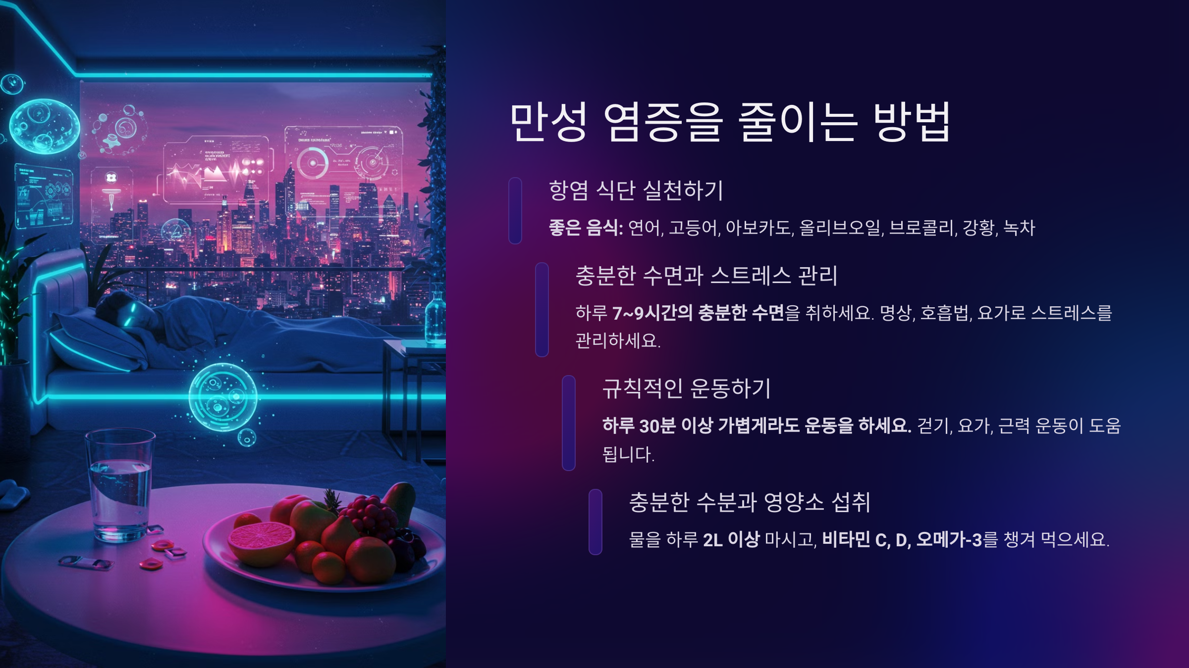 👉 하지만 생활습관을 개선하면 염증을 줄이고 건강한 몸을 유지할 수 있습니다. 오늘부터 항염 식단과 운동을 실천해 보세요!