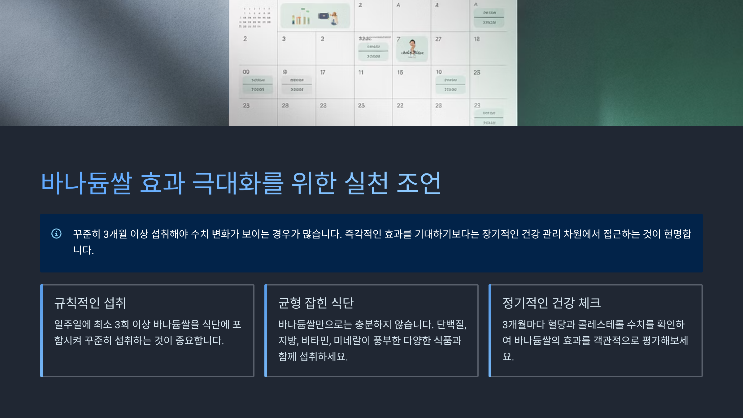 꾸준히 3개월 이상 섭취해야 수치 변화가 보이는 경우가 많습니다.