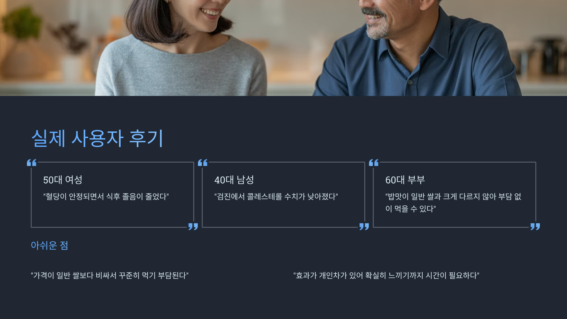 “밥맛이 일반 쌀과 크게 다르지 않아 부담 없이 먹을 수 있다”(60대 부부)