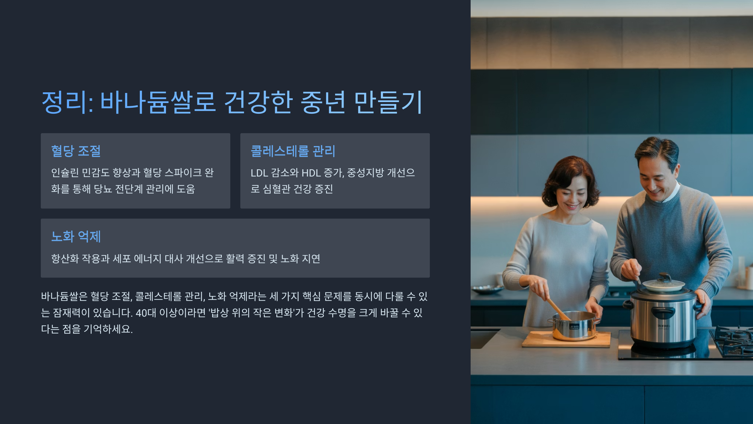 40대 이상이라면 ‘밥상 위의 작은 변화’가 건강 수명을 크게 바꿀 수 있다는 점을 기억하세요.