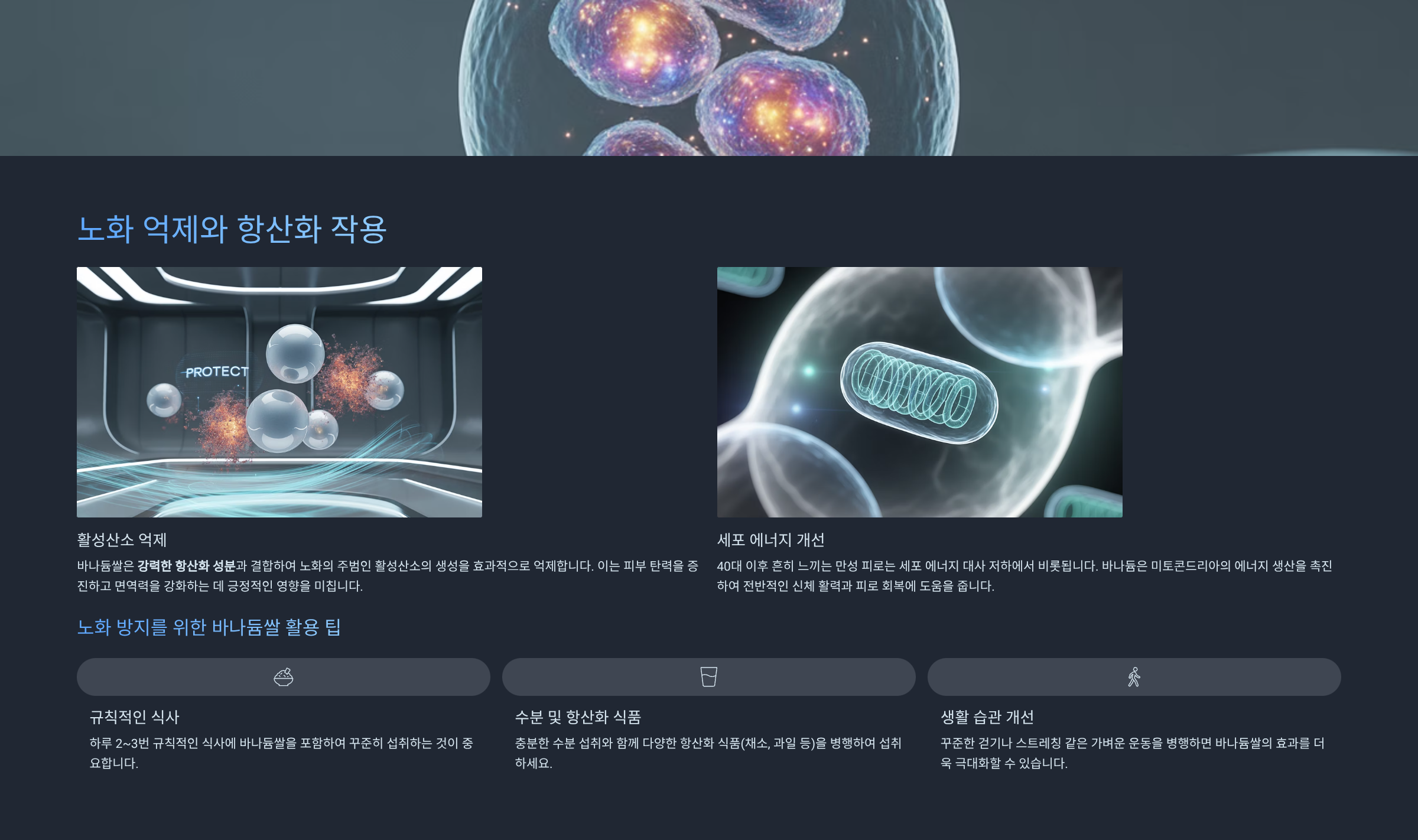 바나듐쌀은 항산화 성분과 결합하여 노화의 주범인 활성산소를 억제하는 작용을 합니다.