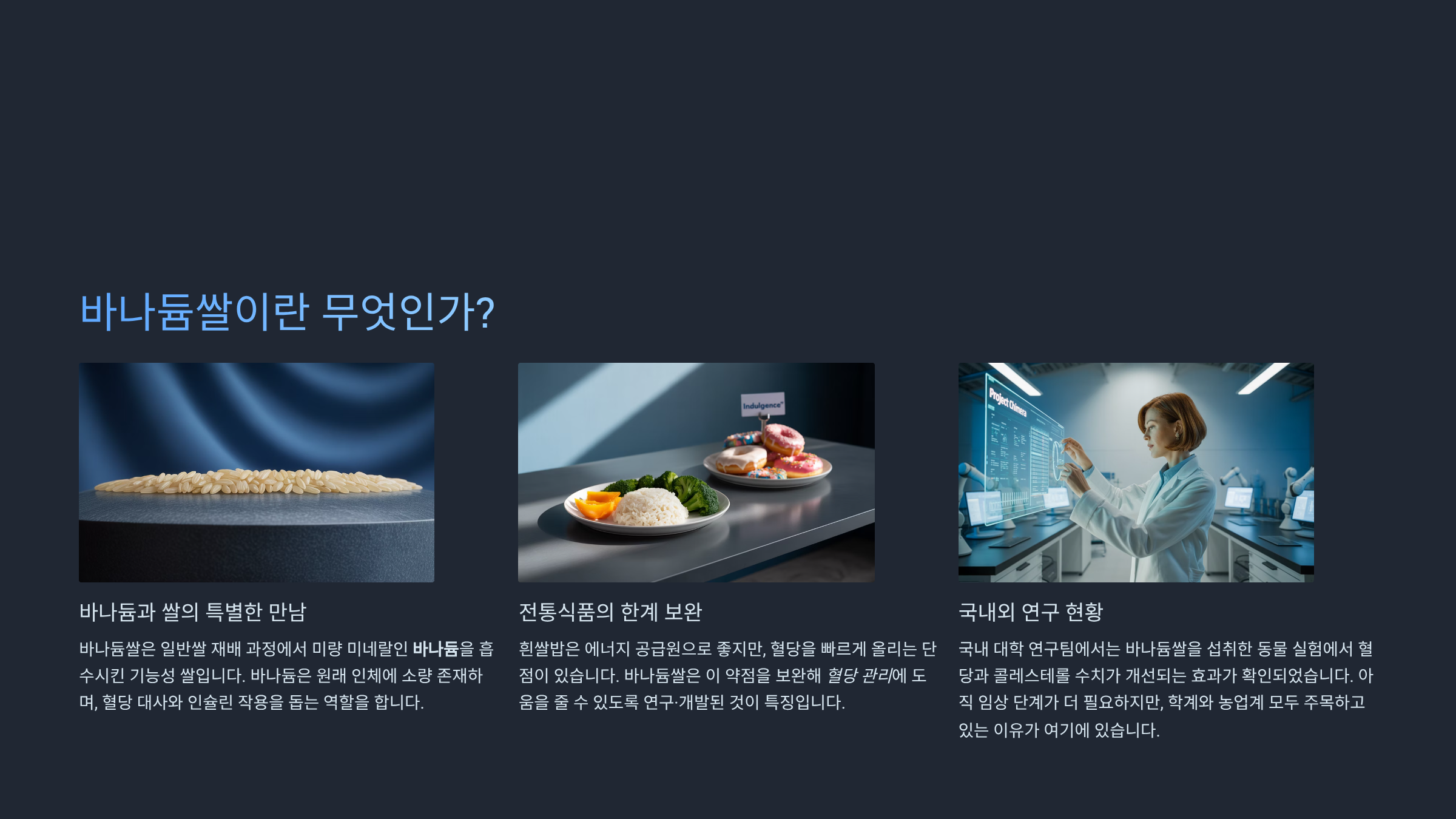 바나듐쌀은 이 약점을 보완해 혈당 관리에 도움을 줄 수 있도록 연구·개발된 것이 특징입니다.