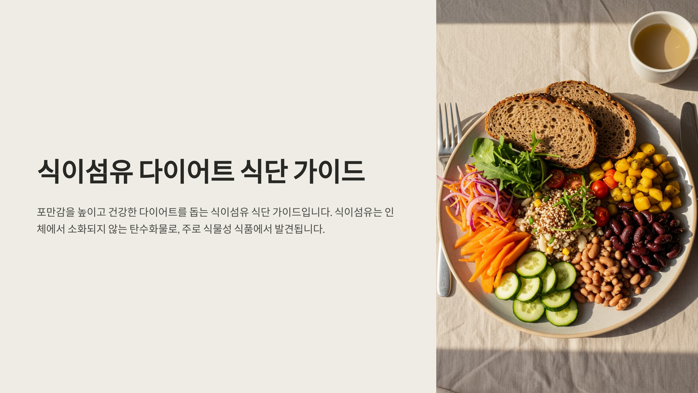 식이섬유는 건강한 다이어트와 장 건강에 필수적입니다. 자연식품을 통한 섭취를 우선하고, 물을 충분히 마시며 점진적으로 양을 늘려보세요!