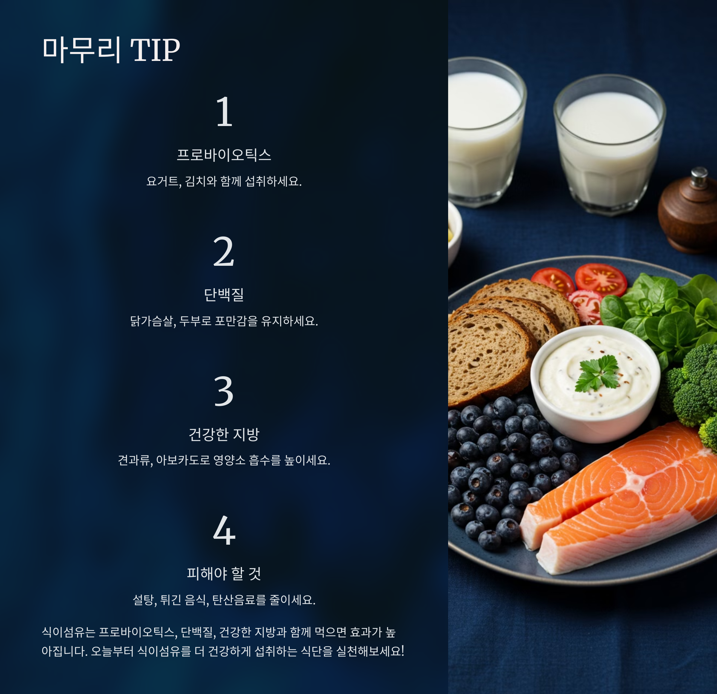 ✅ 식이섬유는 프로바이오틱스, 단백질, 건강한 지방과 함께 먹으면 효과 UP!