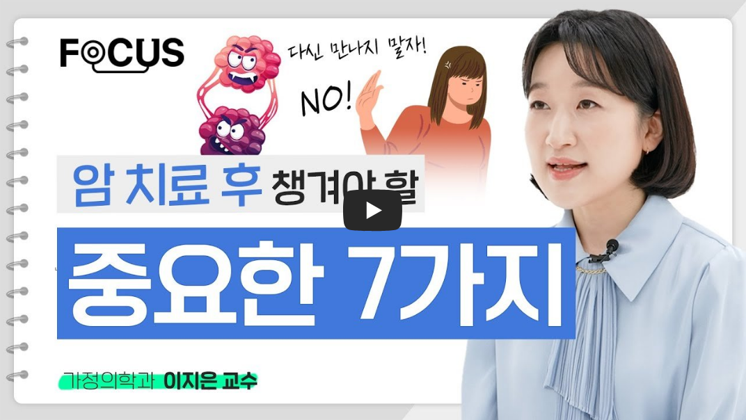 암을 이겨내고 나면 치료 후 관리가 더욱 중요합니다. 지금부터 실천할 수 있는 작은 변화들이 큰 결과로 이어집니다. 힘들었던 시기를 극복하며 얻은 경험을 토대로 더 나은 삶을 살아가길 바랍니다.