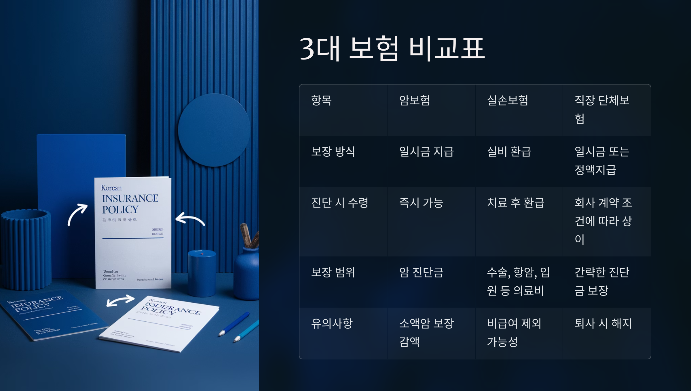 🔍 암 치료에 필요한 3대 보험 비교