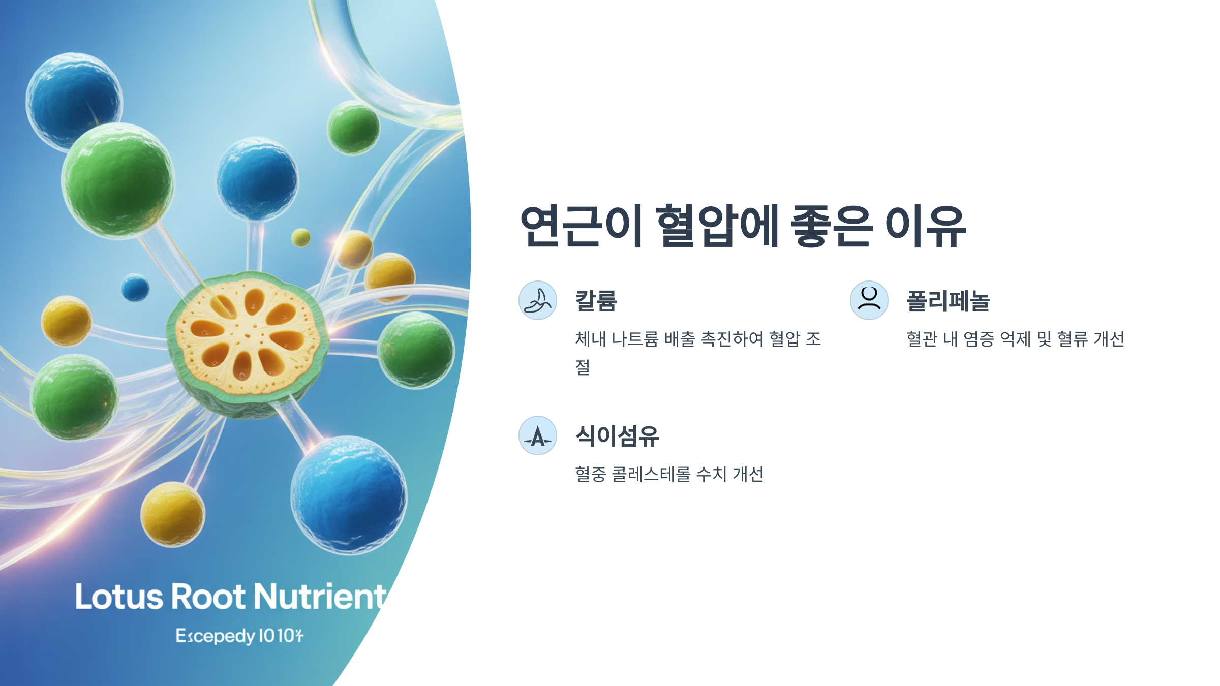 연근은 고혈압 예방에 효과적인 칼륨과 항산화 성분이 풍부해, 자연 혈압 조절 식품으로 탁월합니다.