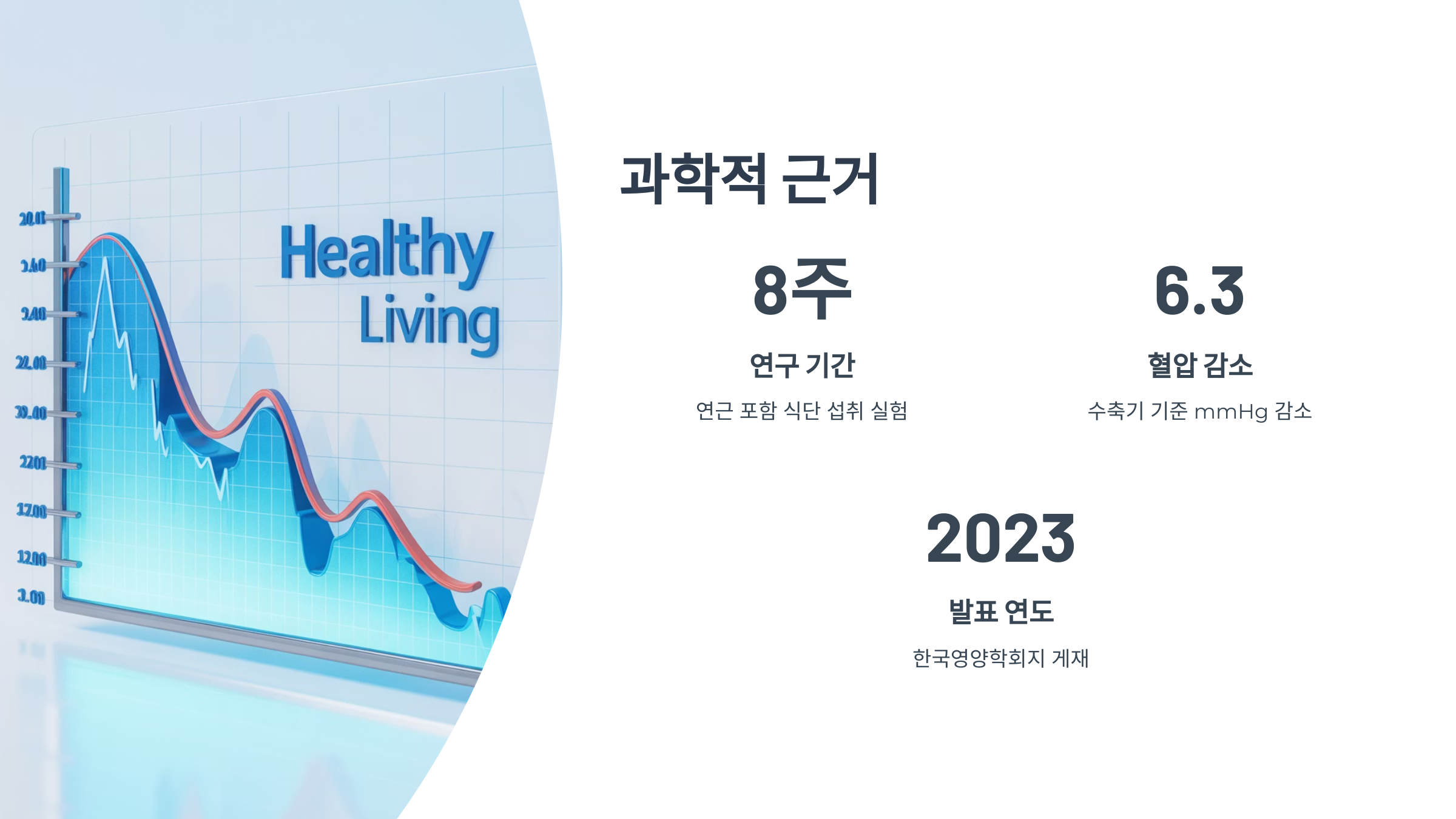 2023년 한국영양학회지에 따르면, 8주간 연근을 포함한 식단을 섭취한 고혈압 전단계 참가자 그룹에서 평균 혈압 수치가 수축기 기준 6.3mmHg 감소한 것으로 나타났습니다. 이는 약물치료 초기 수준과 유사한 효과입니다.
