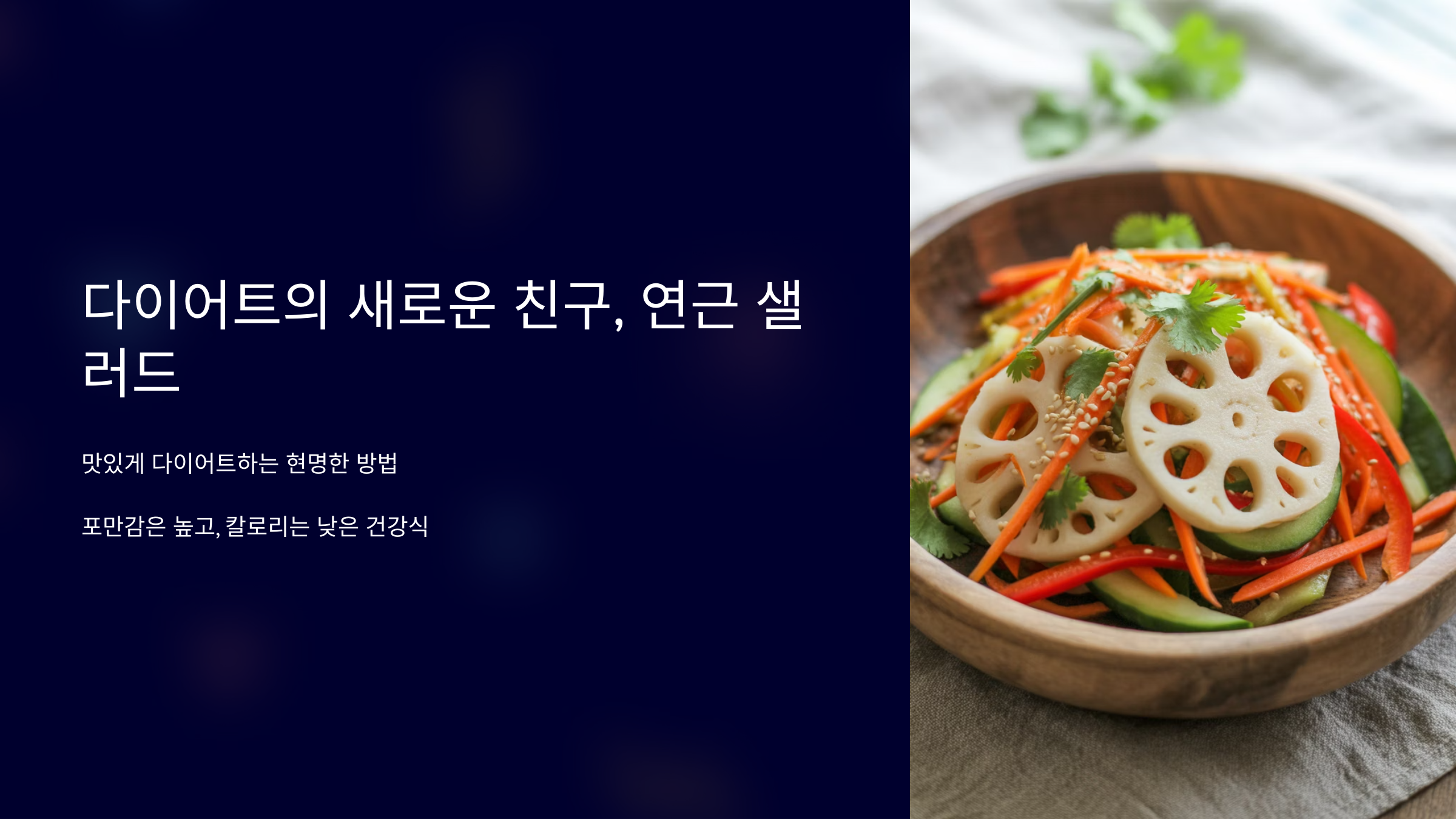 그리고 다이어트는 꾸준함이 관건입니다. 연근샐러드처럼 맛과 영양을 모두 갖춘 식단을 선택해 보세요.
