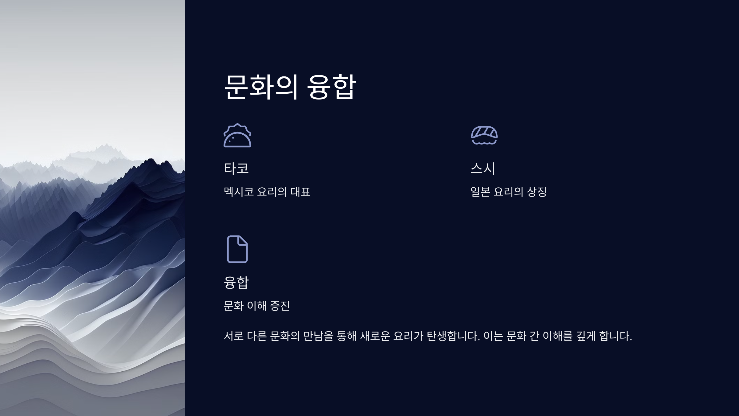 옴니보어는 단순한 음식의 결합을 넘어, 문화의 융합을 의미합니다. 서로 다른 문화가 만나 새로운 요리를 탄생시키는 과정은 마치 두 사람의 사랑이 결실을 맺는 것과 같습니다. 예를 들어, 멕시코의 타코와 일본의 초밥을 결합한 '타코 초밥'은 두 문화의 특성을 살리면서도 새로운 맛을 창출합니다. 이러한 융합은 우리의 미각을 자극하고, 서로 다른 문화에 대한 이해를 높이는 데 기여합니다.