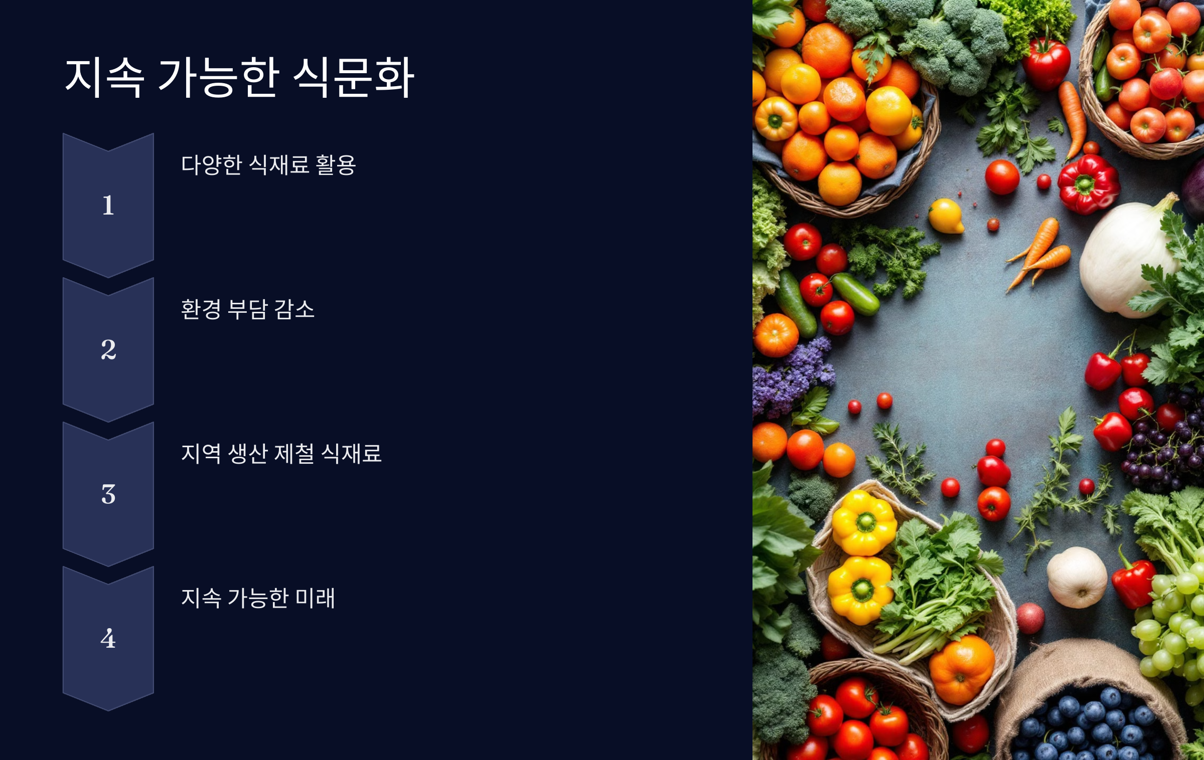 지역에서 생산된 제철 식재료를 활용하는 것은 옴니보어의 중요한 요소입니다. 이는 지속 가능한 식문화를 지향하며, 지역 경제를 지원하는 방법이기도 합니다. 지역 농산물 직거래 장터를 방문하거나, 지역 식당에서 제철 음식을 주문해 보세요.