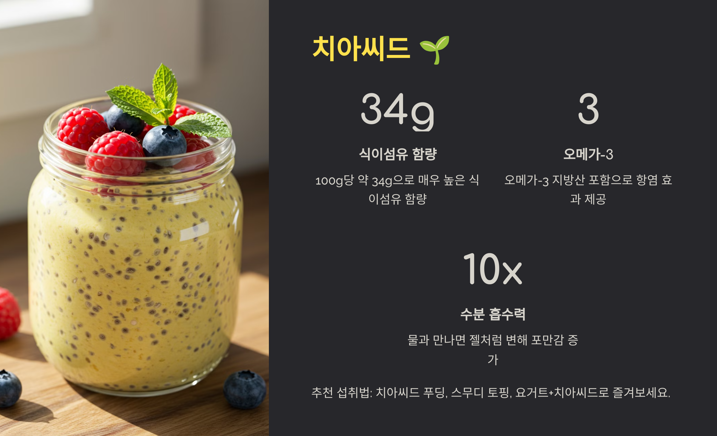 치아시드 푸딩, 스무디 토핑, 요구르트+치아시드