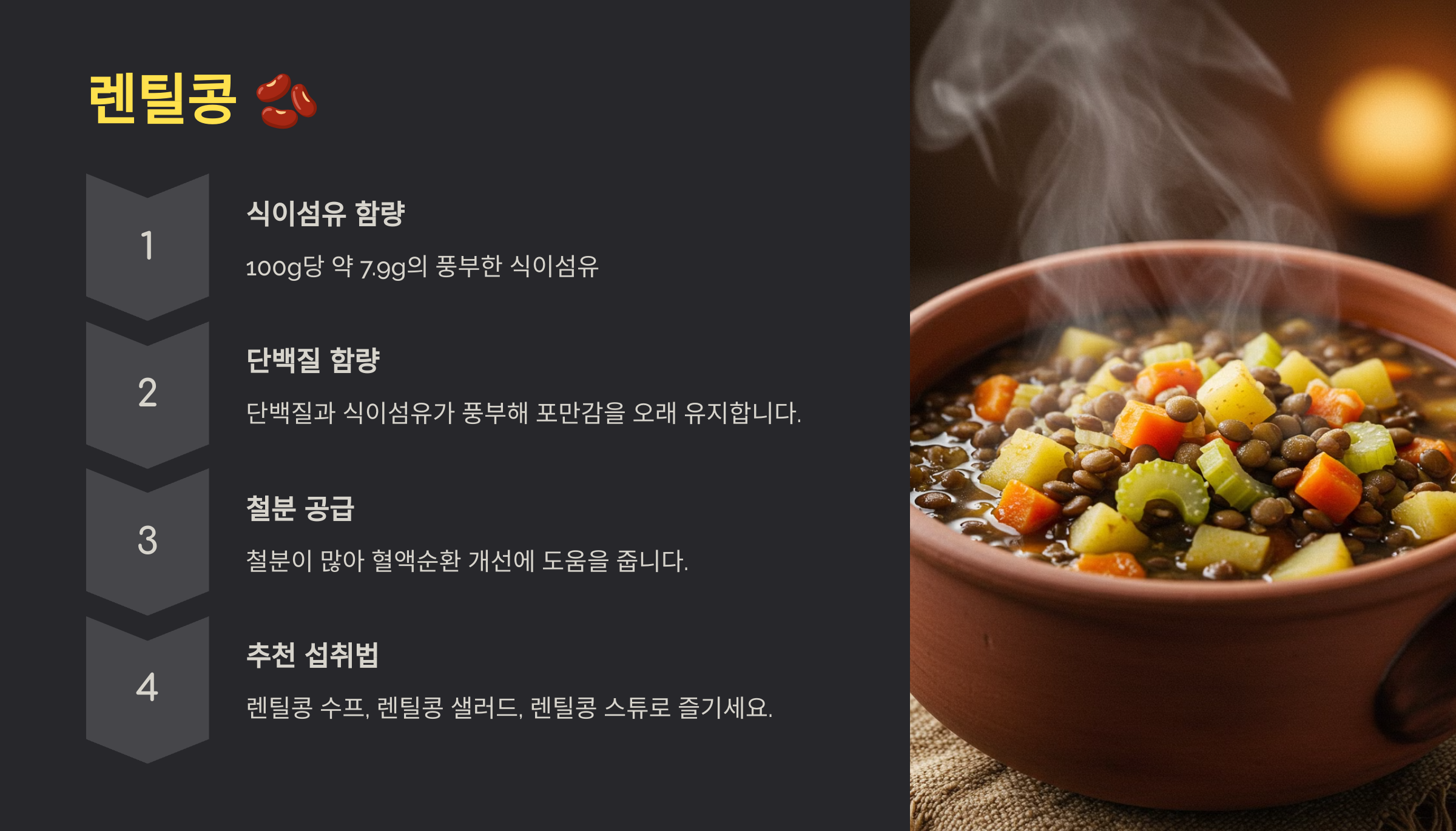 렌틸콩 수프, 렌틸콩 샐러드, 렌틸콩 스튜