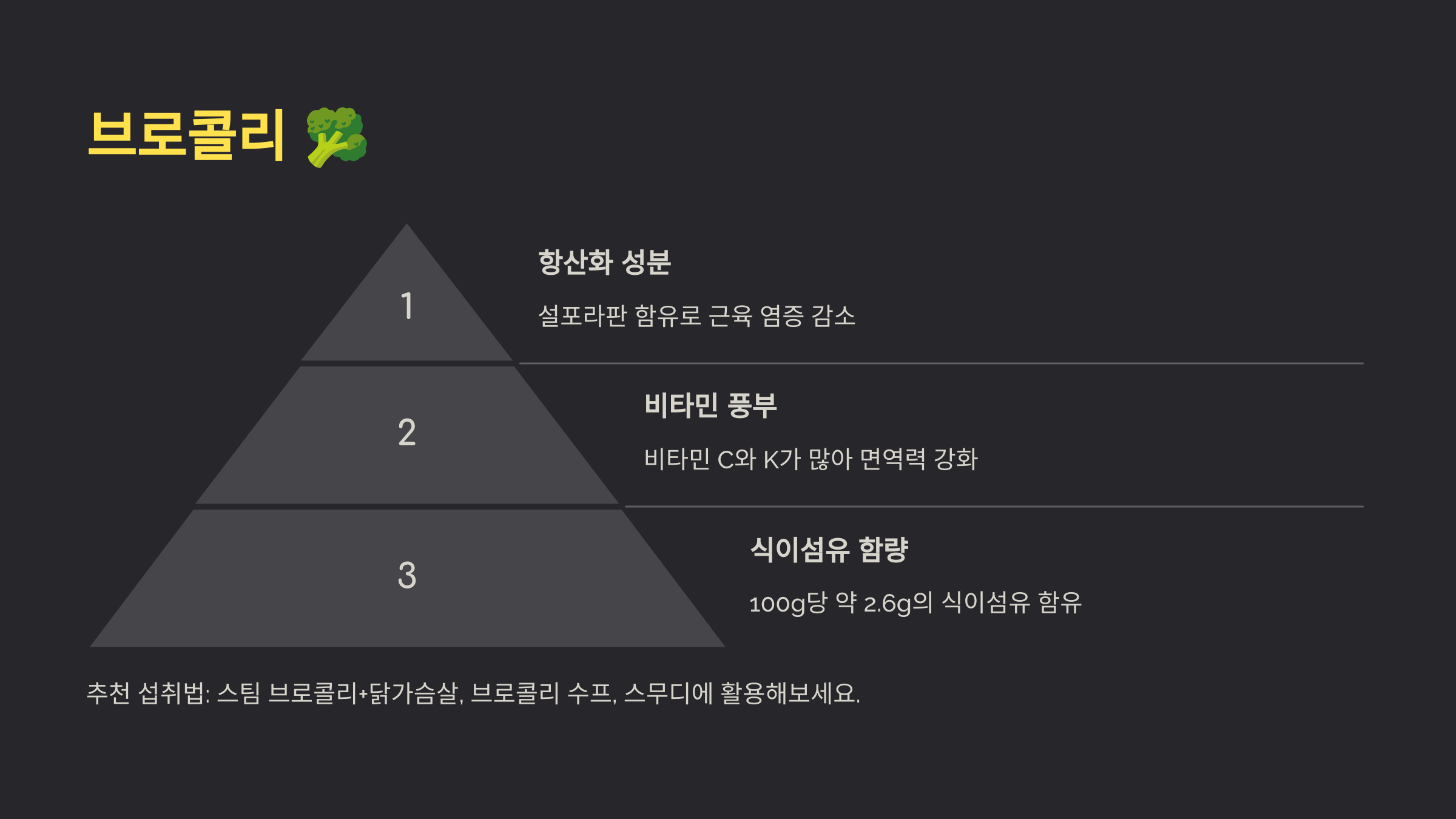 - 항산화 성분 (설포라판) 포함 → 근육 염증 감소