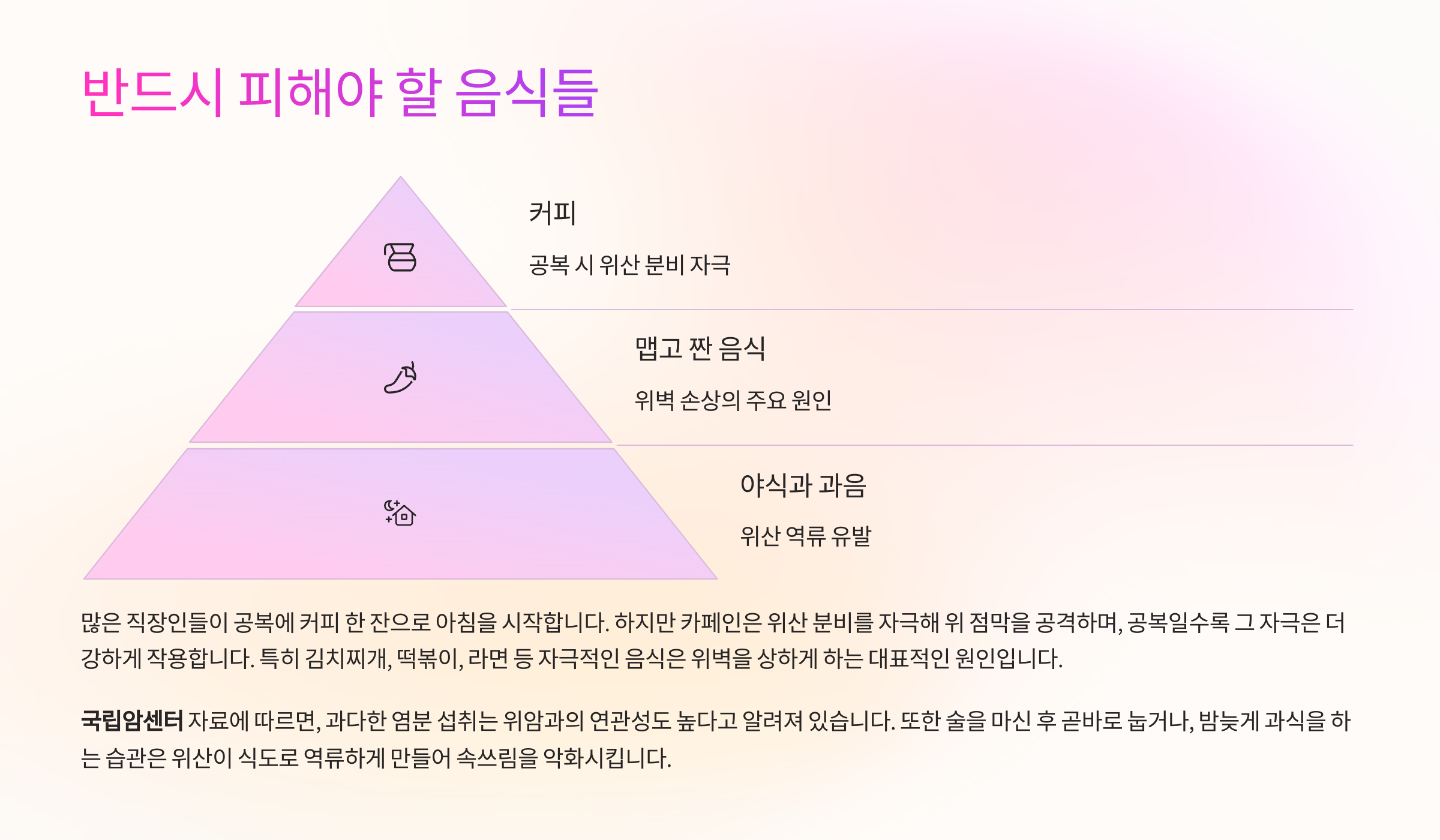 “스트레스는 피할 수 없지만, 그로 인해 속까지 쓰라릴 필요는 없다.” 지금 바로 실천 가능한 팁부터 시작해 보세요. 위염은 관리하는 병입니다!