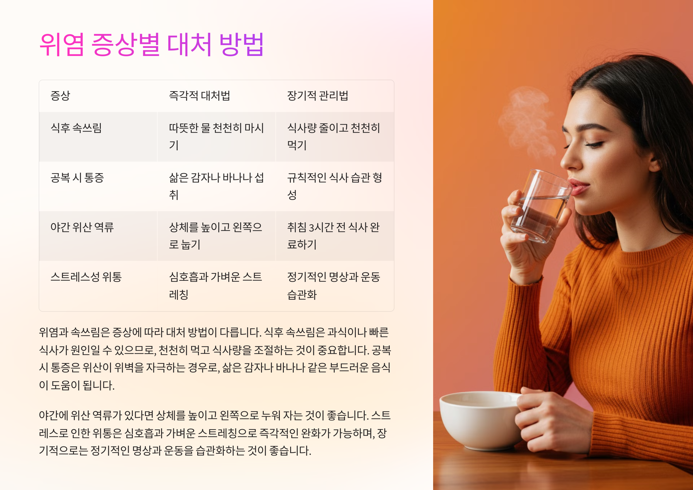 위염과 속쓰림 완화 및 예방을 위한 실질적 가이드