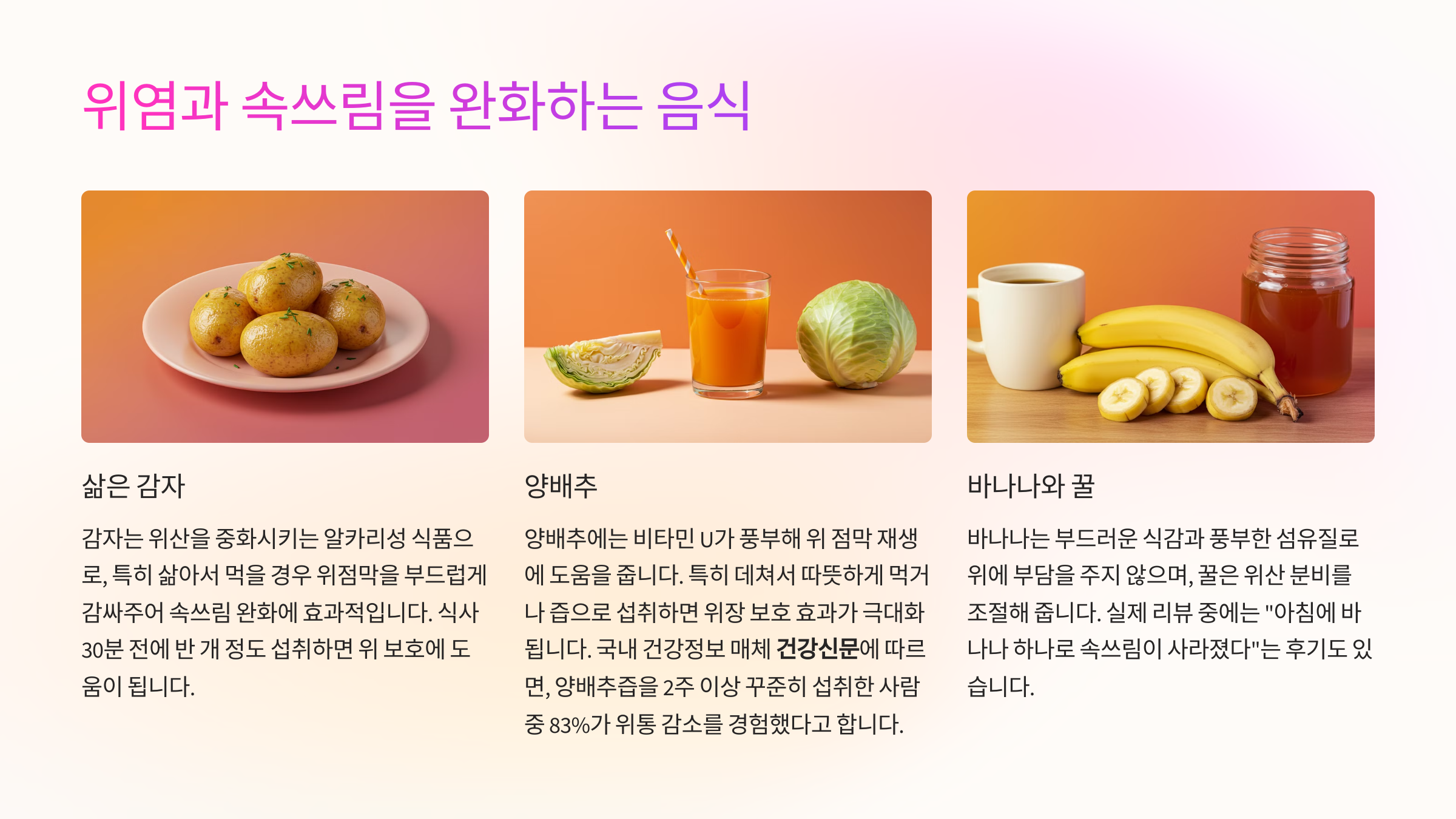 위염과 속 쓰림을 완화하는 음식