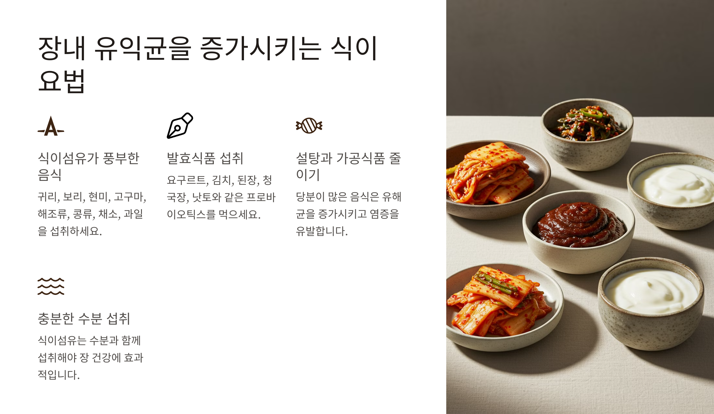 ✔ 유산균이 풍부한 발효식품 먹기