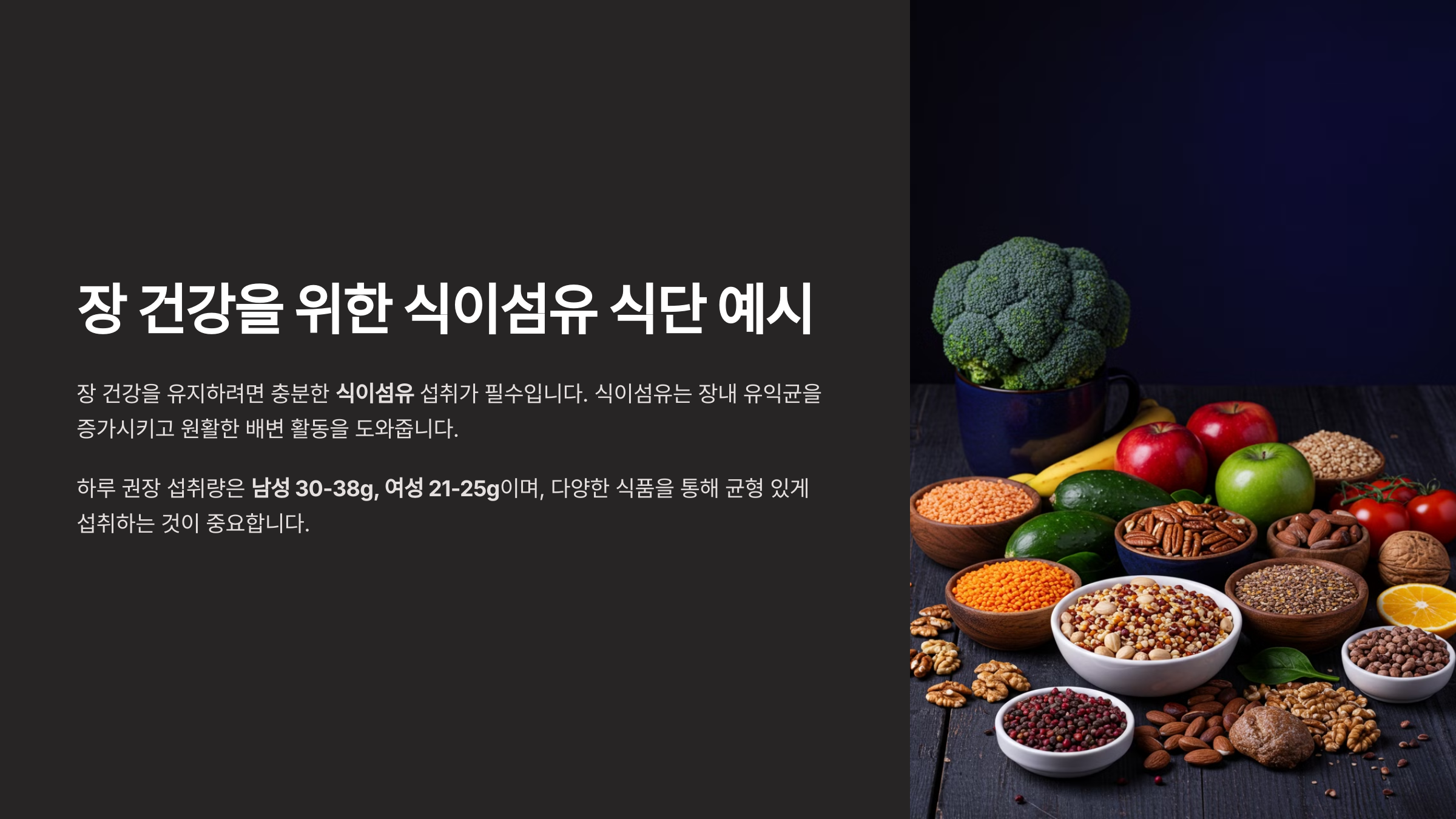 📌 오늘부터 장 건강을 위한 식이섬유 식단을 실천해 보세요! 😊