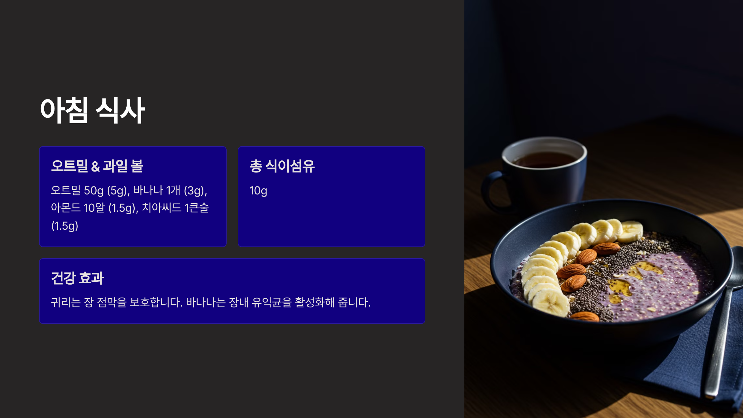 💡 귀리는 장점막을 보호하고, 바나나는 장내 유익균을 활성화해 줍니다.