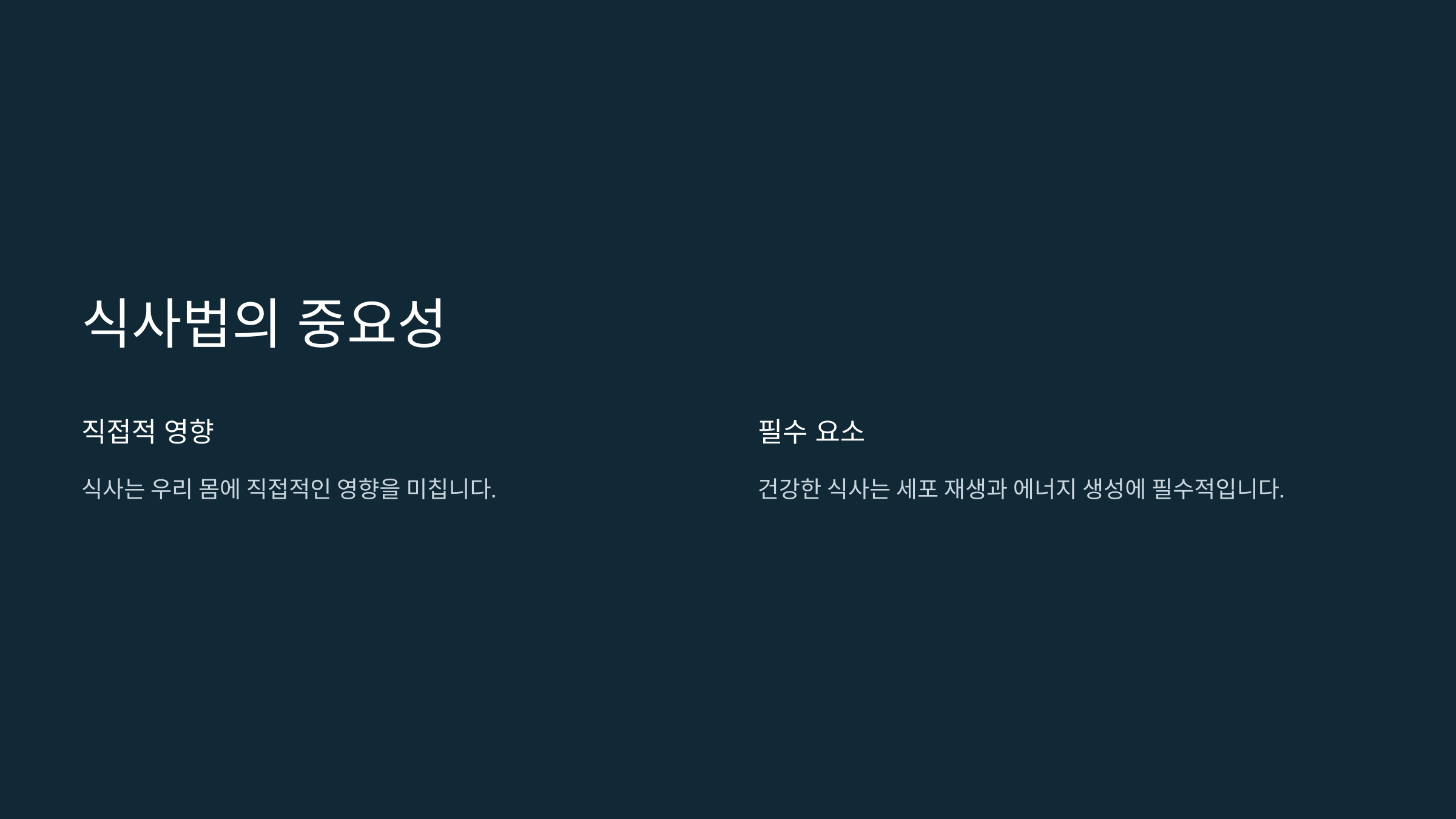 식사는 우리의 몸에 직접적인 영향을 미치는 중요한 요소입니다. 우리가 섭취하는 음식은 세포의 재생과 에너지 생성에 필수적입니다. 따라서 저속노화식사법은 단순한 다이어트가 아닌, 건강한 삶을 위한 필수적인 방법입니다.