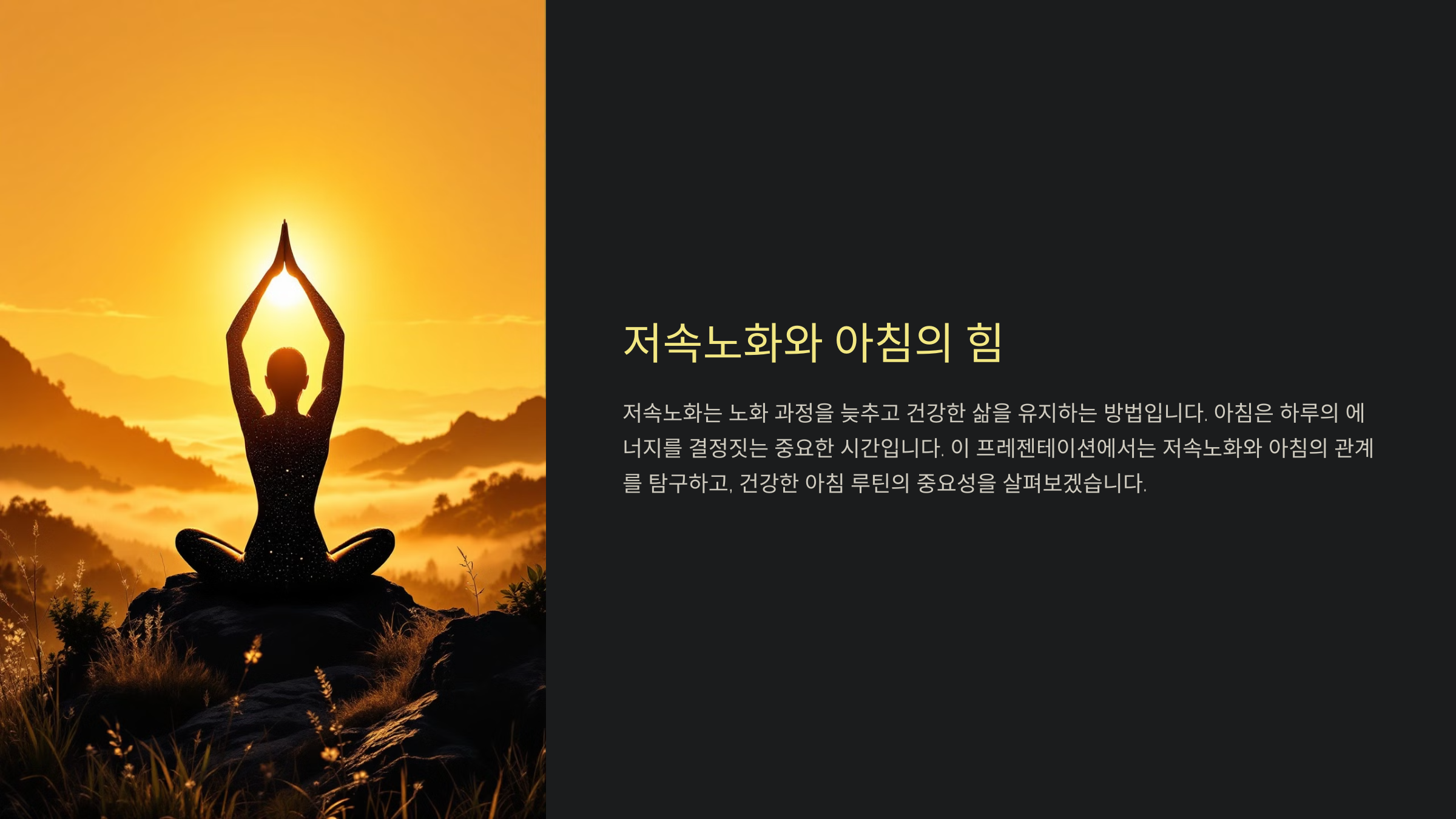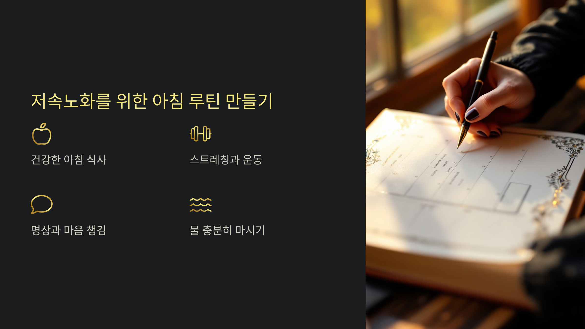 아침 시간을 자신에게 투자하는 것이 중요합니다. 이는 저속노화에 기여합니다.
