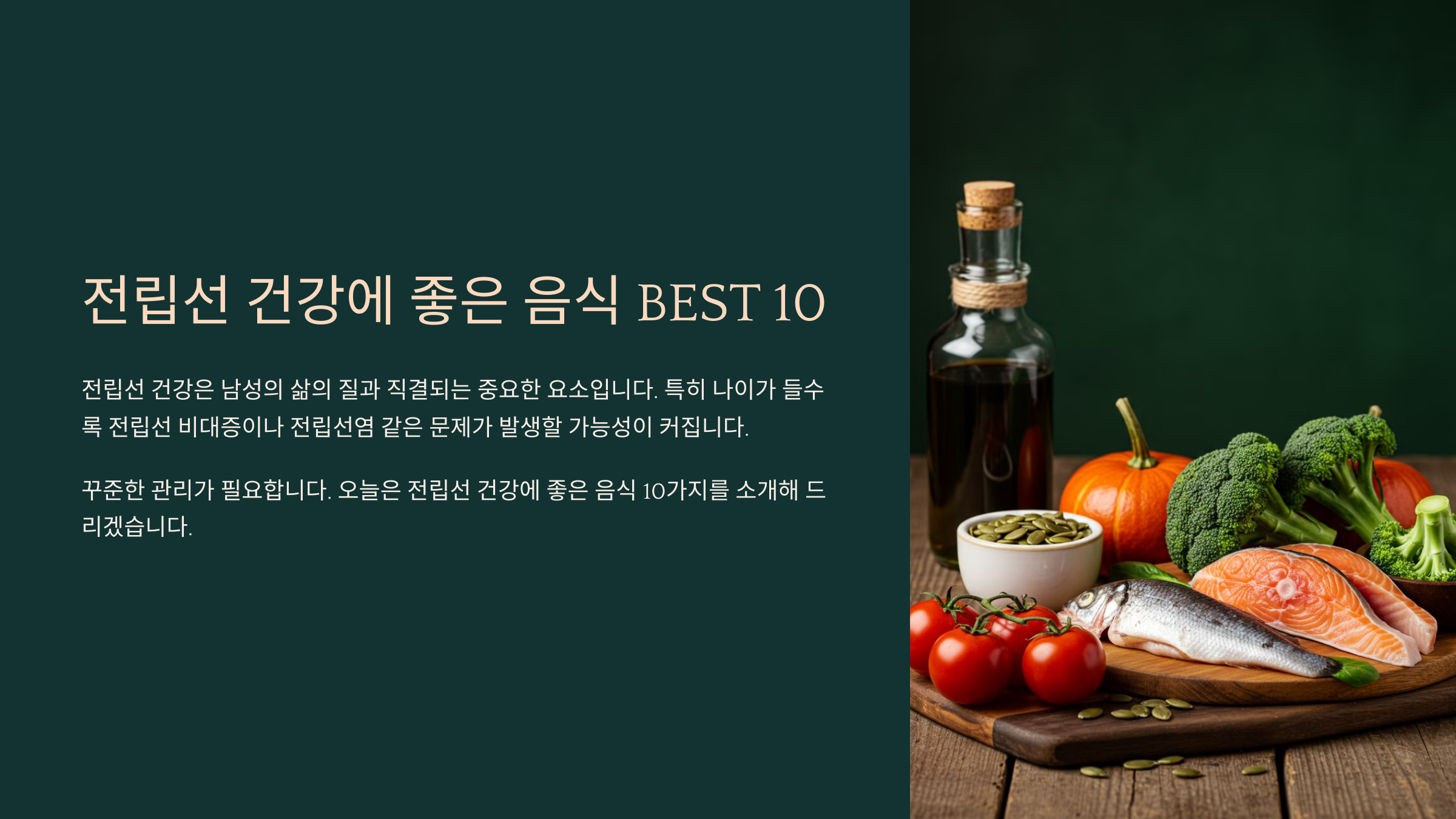 전립선 건강은 남성의 삶의 질과 직결되는 중요한 요소입니다. 특히 나이가 들수록 전립선 비대증(BPH)이나 전립선염 같은 문제가 발생할 가능성이 커지므로, 꾸준한 관리가 필요합니다. 오늘은 전립선 건강에 좋은 음식 10가지를 소개해 드리겠습니다.