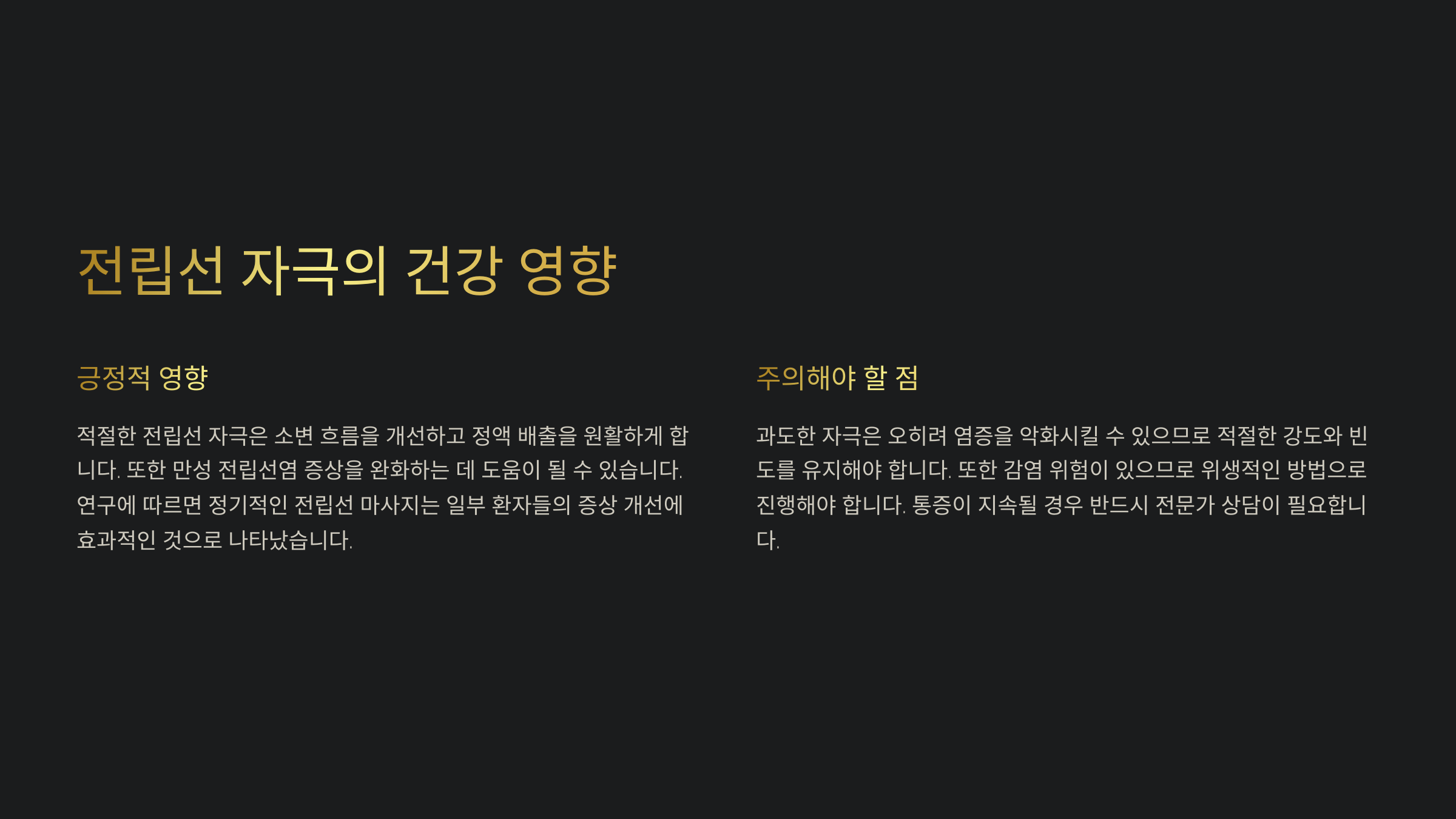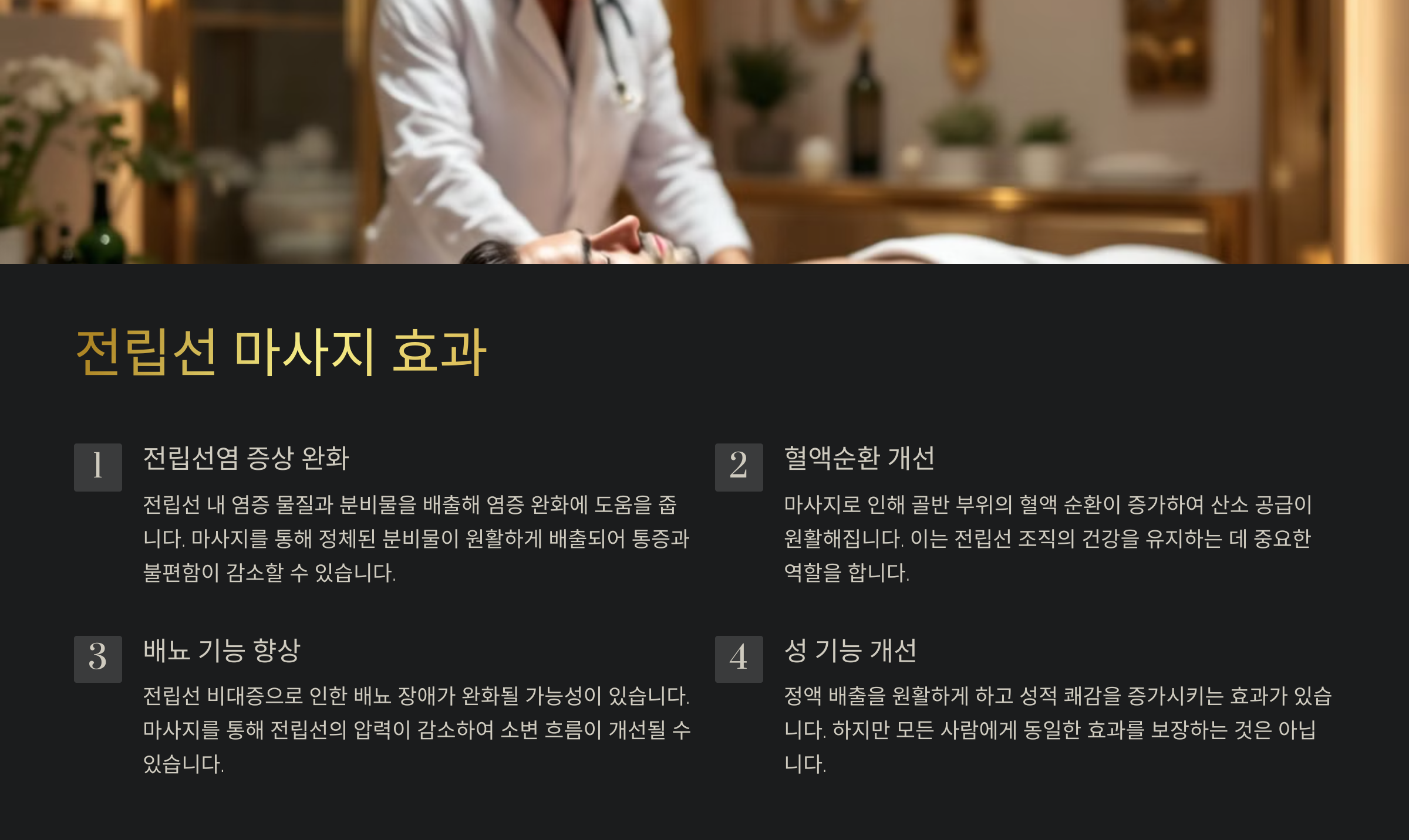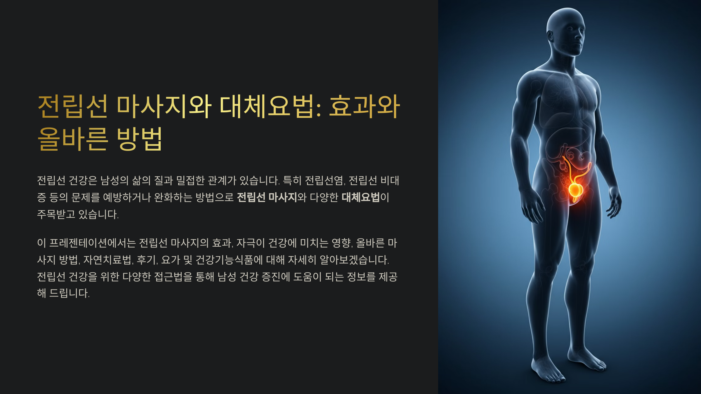 전립선 건강은 남성의 삶의 질과 밀접한 관계가 있습니다. 특히 전립선염, 전립선 비대증 등의 문제를 예방하거나 완화하는 방법으로 전립선 마사지와 다양한 대체요법이 주목받고 있습니다. 이번 글에서는 전립선 마사지의 효과, 자극이 건강에 미치는 영향, 올바른 마사지 방법, 자연치료법, 후기, 요가 및 건강기능식품에 대해 자세히 알아보겠습니다.