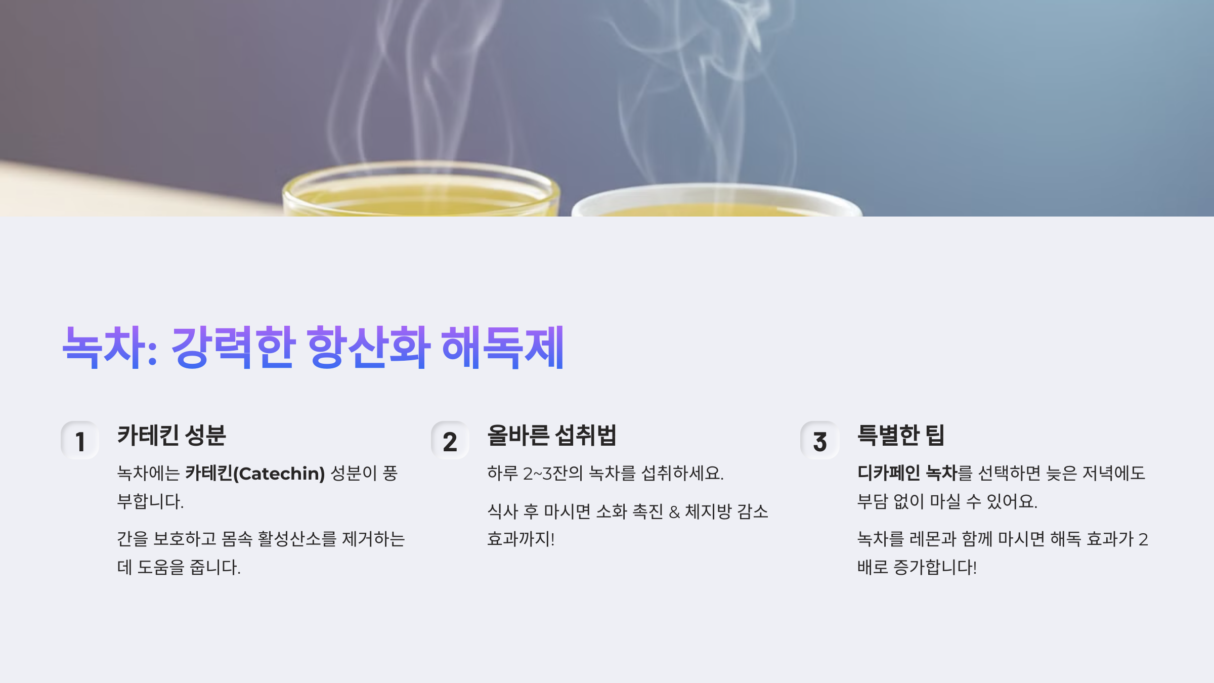 🍵 2. 녹차: 강력한 항산화 해독제