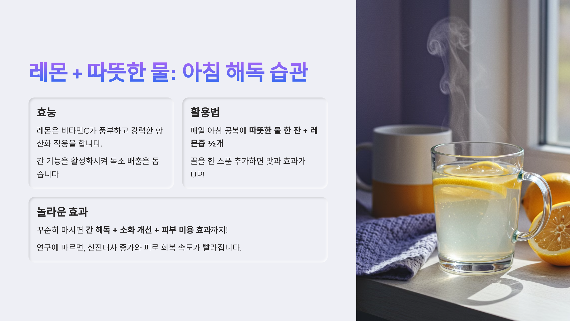 🌿 1. 레몬 + 따뜻한 물: 아침 해독 습관
