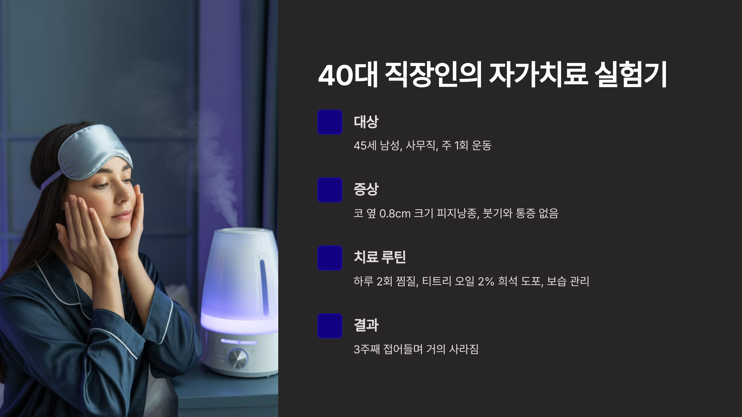 병원 가기 망설여지는 피지낭종, 정말 자가치료로 가능할까요? 이번 글에서는 실제 자가치료를 시도해 본 40대 직장인의 리얼한 경험과 함께, 어떤 방법이 효과 있었고 어떤 부분에서 주의가 필요한지를 구체적으로 정리해 봤습니다. 시간과 비용을 아끼고 싶은 분들께 실질적인 가이드가 될 수 있도록 구성했습니다.