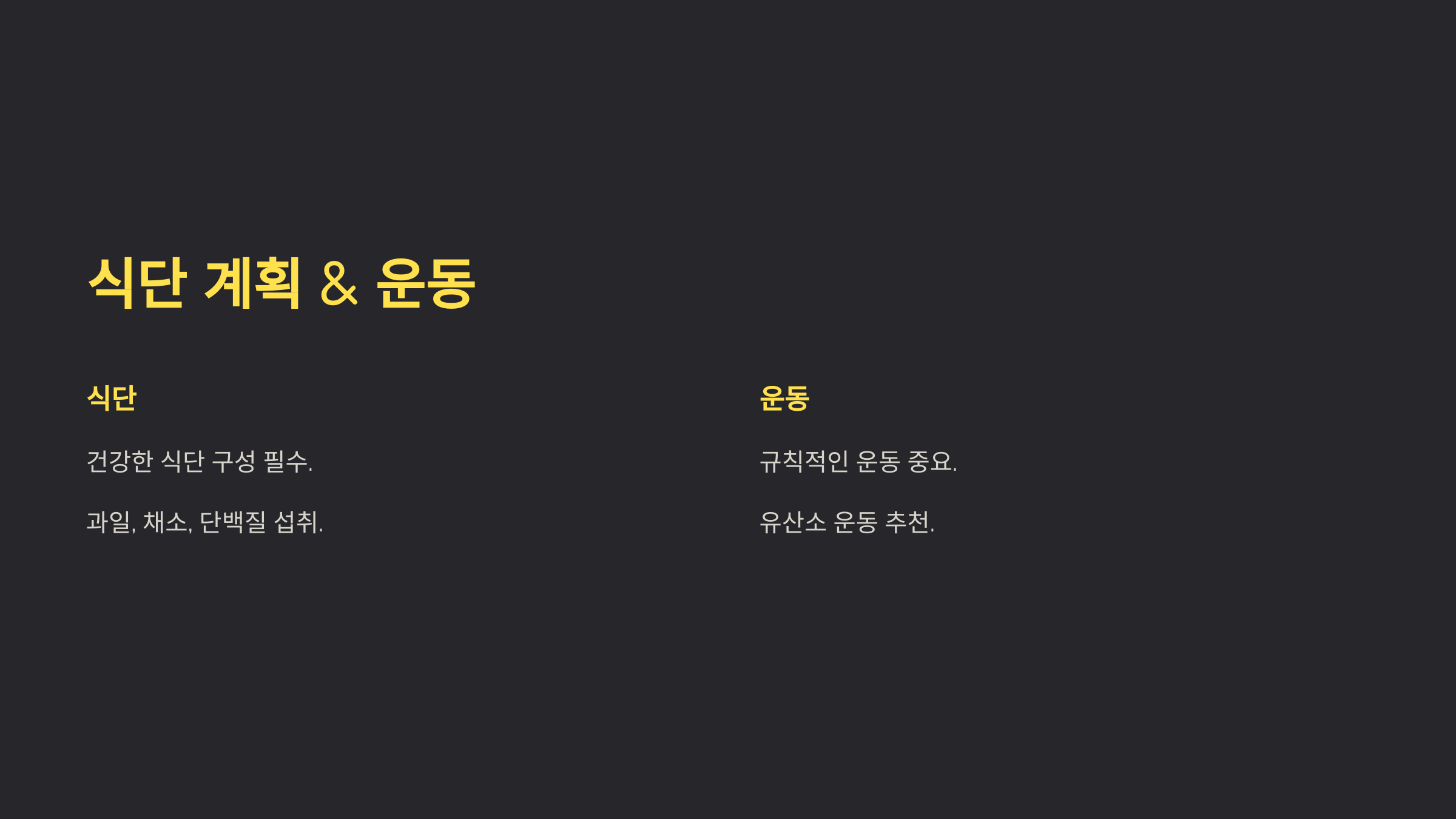 운동은 체중 감량에 매우 중요한 역할을 합니다. 규칙적인 운동을 통해 칼로리를 소모하고, 기초 대사량을 높일 수 있습니다. 예를 들어, 일주일에 3~4회, 30분 이상 유산소 운동을 하는 것이 좋습니다. 다만, 운동을 처음 시작하는 경우에는 무리하지 않도록 주의해야 합니다. 또한, 운동 후에는 충분한 수분을 섭취하고, 적절한 영양소를 보충하는 것도 중요합니다. 운동과 식단이 조화롭게 이루어질 때, 체중 감량 효과는 더욱 극대화됩니다.