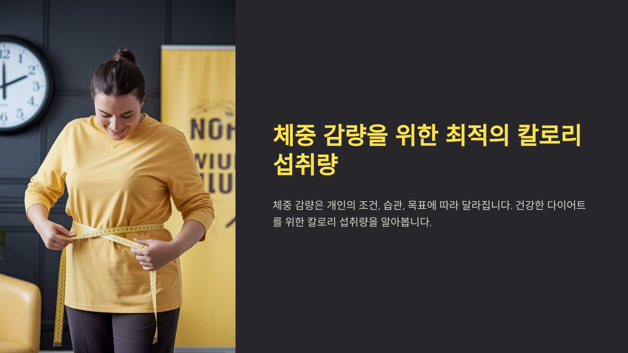 체중 감량을 위한 최적의 칼로리 섭취량은 개인의 신체 조건, 생활 습관, 목표에 따라 달라집니다. 하지만 기본적으로는 자신의 기초 대사량을 파악하고, 현실적인 목표를 세운 후, 건강한 식단과 운동을 병행하는 것이 중요합니다. 이러한 과정에서 체중 감량뿐만 아니라 건강한 삶을 유지할 수 있습니다. 여러분의 다이어트 여정이 성공적이길 바랍니다!