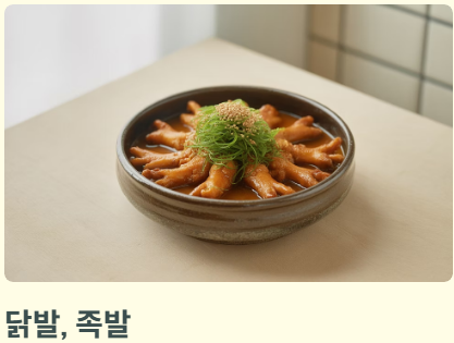 - 닭발, 족발: 콘드로이친과 콜라겐이 풍부