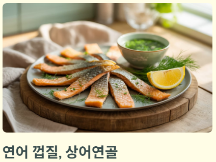 - 이번 주 식단에 족발, 연어 껍질 넣어보기