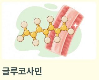 - 글루코사민: 연골 구성 성분으로, 콘드로이친과 함께 복용 시 재생 촉진